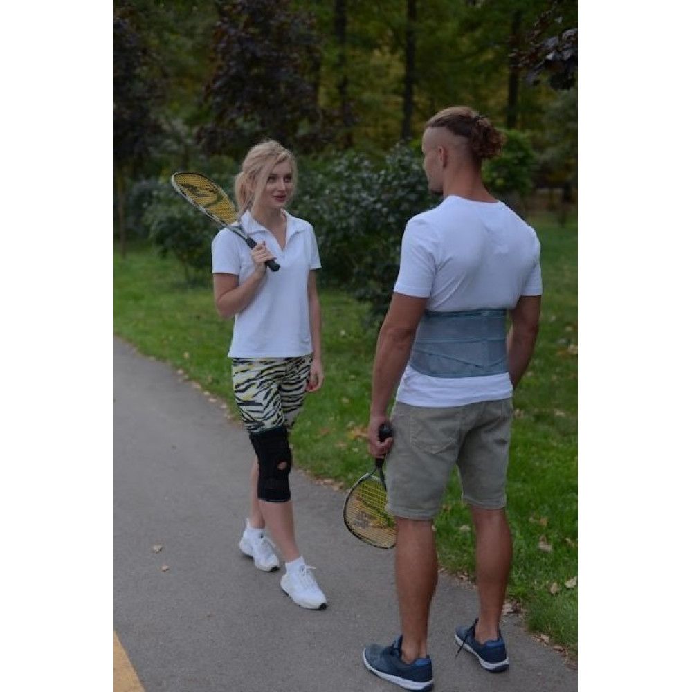 Корсет на попереково-крижовий відділ хребта фіксує хребет на рівні Th12-S4, стабілізує зв’язково-суглобний апарат, зменшує навантаження на поперек і усуває дисбаланс паравертебральних м’язів у зоні свого впливу. У разі зміщення хребців в означеному відділі нормалізує та стабілізує їх положення, зменшуючи біль. Міцне еластичне медичне полотно з додаванням бавовни не викликає подразнень і тривалий час зберігає свої властивості. Модельовані ребра жорсткості, подушечка під лордоз і додаткові стрічки-затяжки дозволяють точно підлаштувати виріб під параметри користувача й уникнути натирання у процесі застосування виробу. Матеріал, із якого виготовлено корсет, повітропроникний, він перешкоджає створенню парникового ефекту, тож шкіра залишається сухою й не перегрівається.