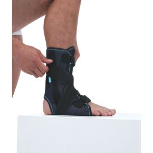 Забезпечує повний ступінь фіксації суглоба, в окремих випадках (тріщини в кістках, легкі переломи без зміщення) може замінювати гіпсову пов’язку. Жорстко утримує кінцівку в фізіологічно вигідному положенні, виключає рухливість, завдяки чому зменшується біль в ушкодженому суглобі. Ортез міцно охоплює щиколотку та стопу і запобігає набряканню цієї ділянки.