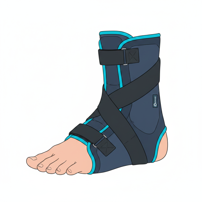 - Стабілізує гомілковостопний суглоб у фізіологічно вигідному положенні та знижує навантаження на нього.