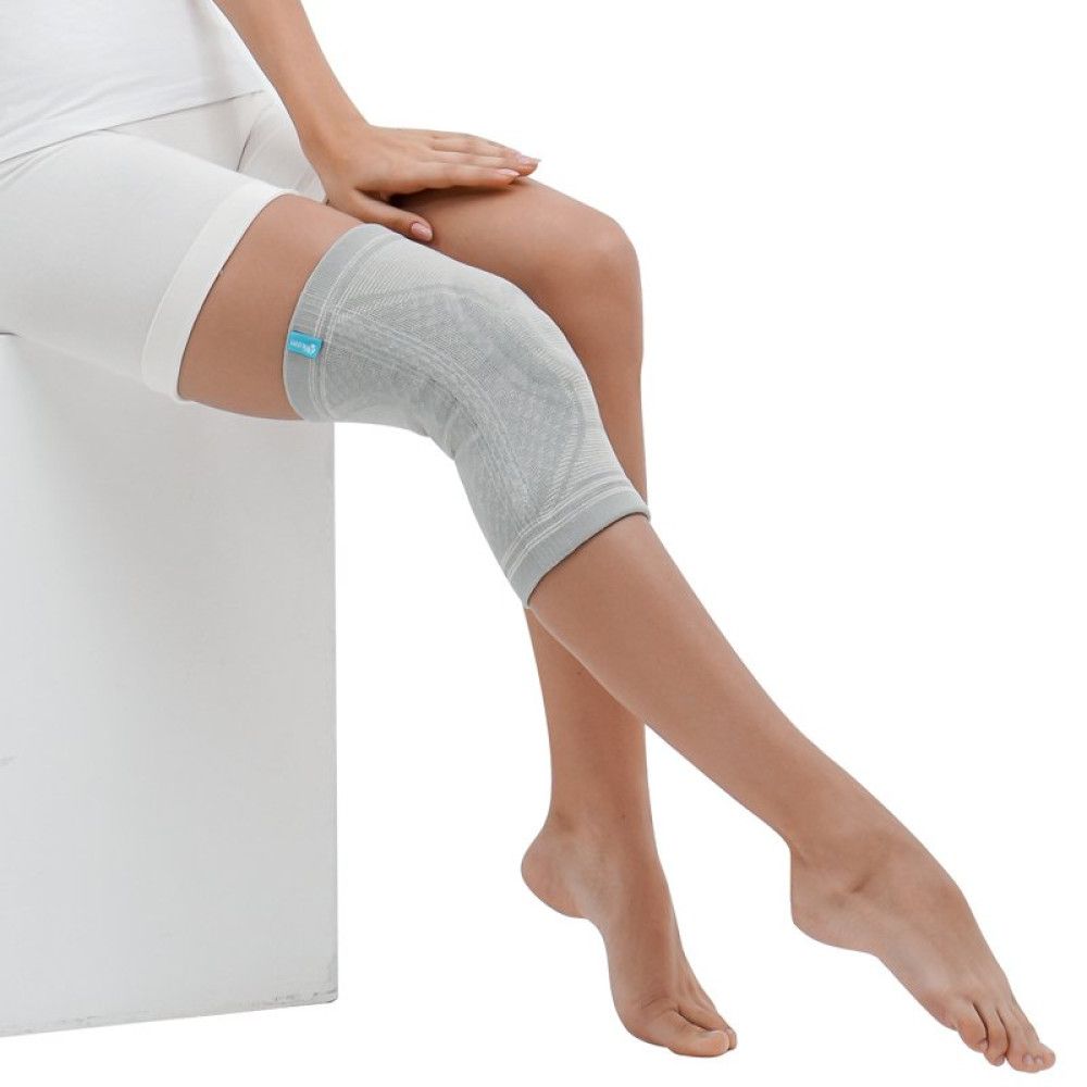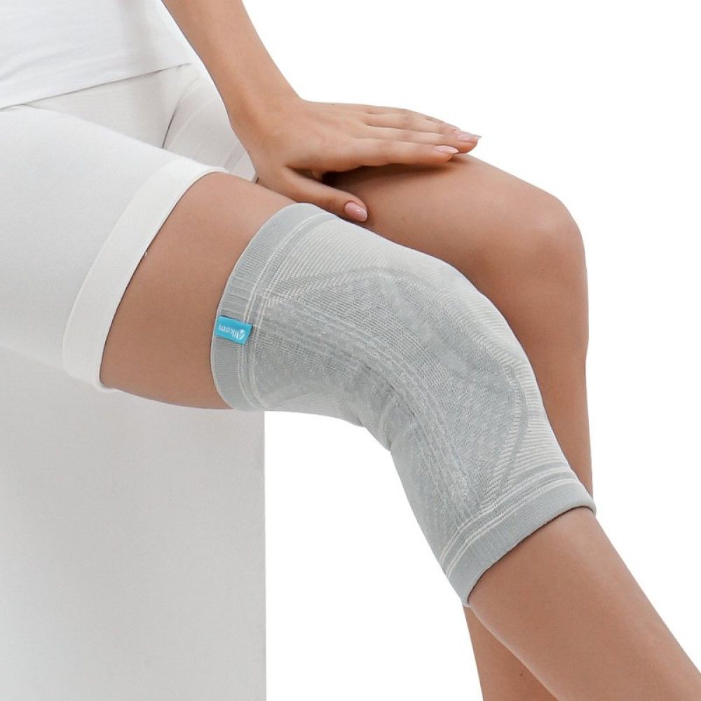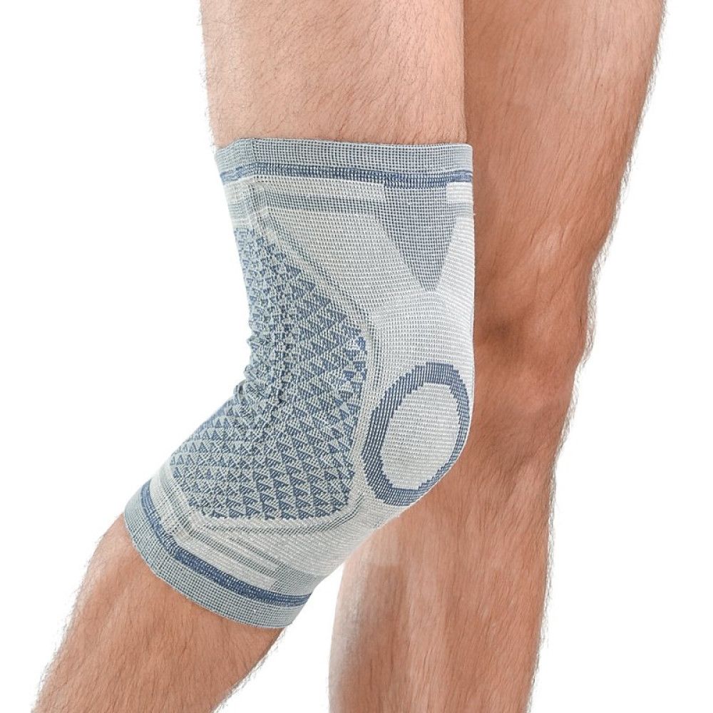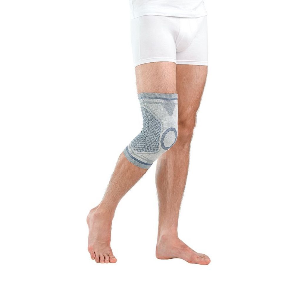 Еластичний наколінник, посилений спіралеподібними ребрами жорсткості, ніжно, але міцно утримує суглоб у фізіологічно вигідному положенні та послаблює навантаження на зв’язки. Силіконове пателярне кільце надійно фіксує надколінок. Анатомічний крій і правильно розподілений тиск не дозволяють виробу зміщуватись. Сучасна тканина чудово зберігає свої властивості й зовнішній вигляд надзвичайно довго. Завдяки спеціально добраному складові на ділянці впливу бандажа підтримується оптимальний температурний баланс: у ньому не жарко влітку й не холодно взимку.