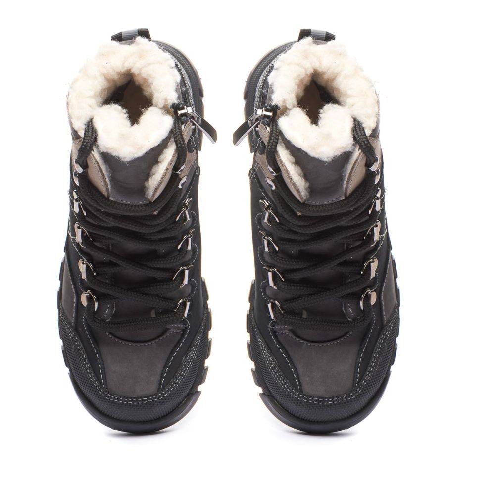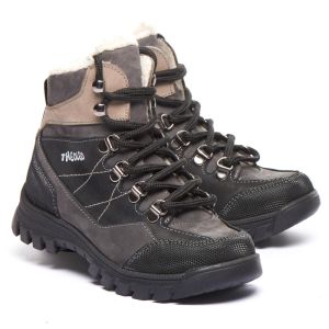 Theo Leo 1407 якісні зимові ортопедичні черевики для активної дитини виконані з натурального нубуку, у чорному з сірими і коричневими вставками. Мають прогумований носок. Модель поєднує в собі високу якість і комфорт, створена для тривалих прогулянок і активних ігор.