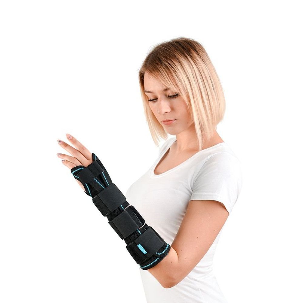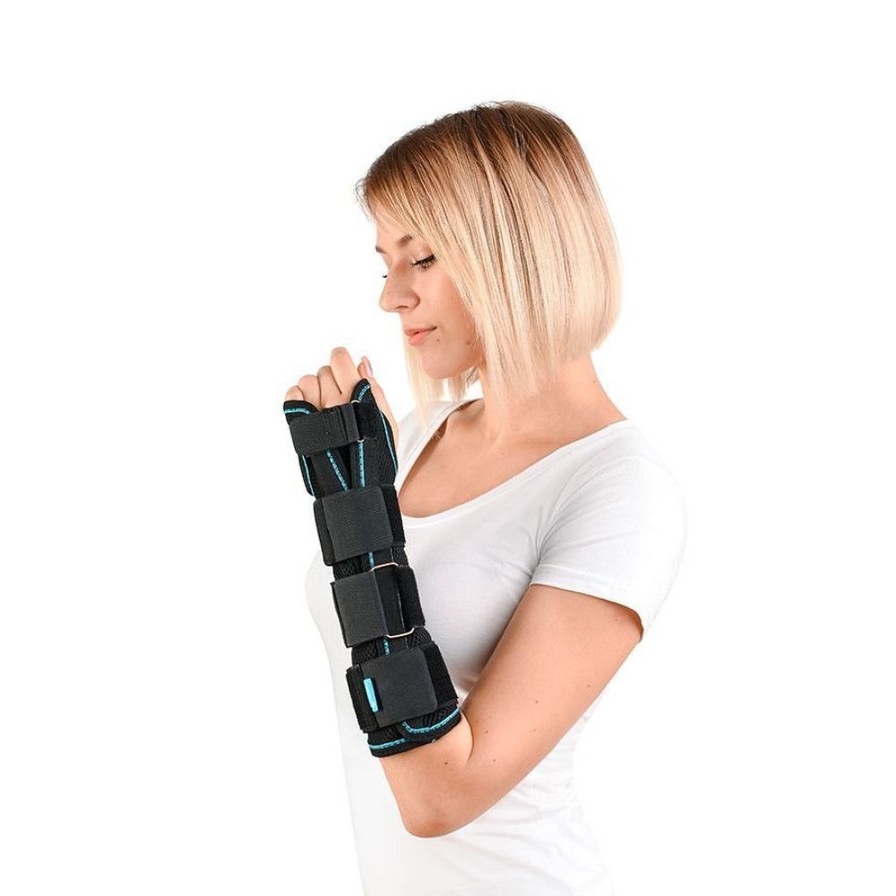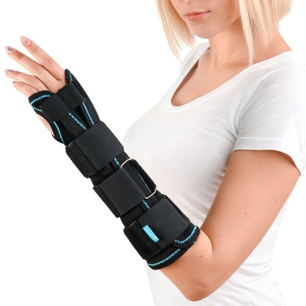 Завдяки роз’ємній конструкції ортез зручно надягати, і стороння допомога при цьому не потрібна. Застібки-липучки підлаштовують виріб під параметри конкретного користувача, а модельоване металеве ребро жорсткості робить таке підлаштування ідеальним. Трикотажна обробка країв запобігає натиранню. Бавовняний шар зсередини робить ортез приємним на дотик і запобігає виникненню подразнень і алергічних реакцій. Подовжена модель, що закриває більшу частину передпліччя.