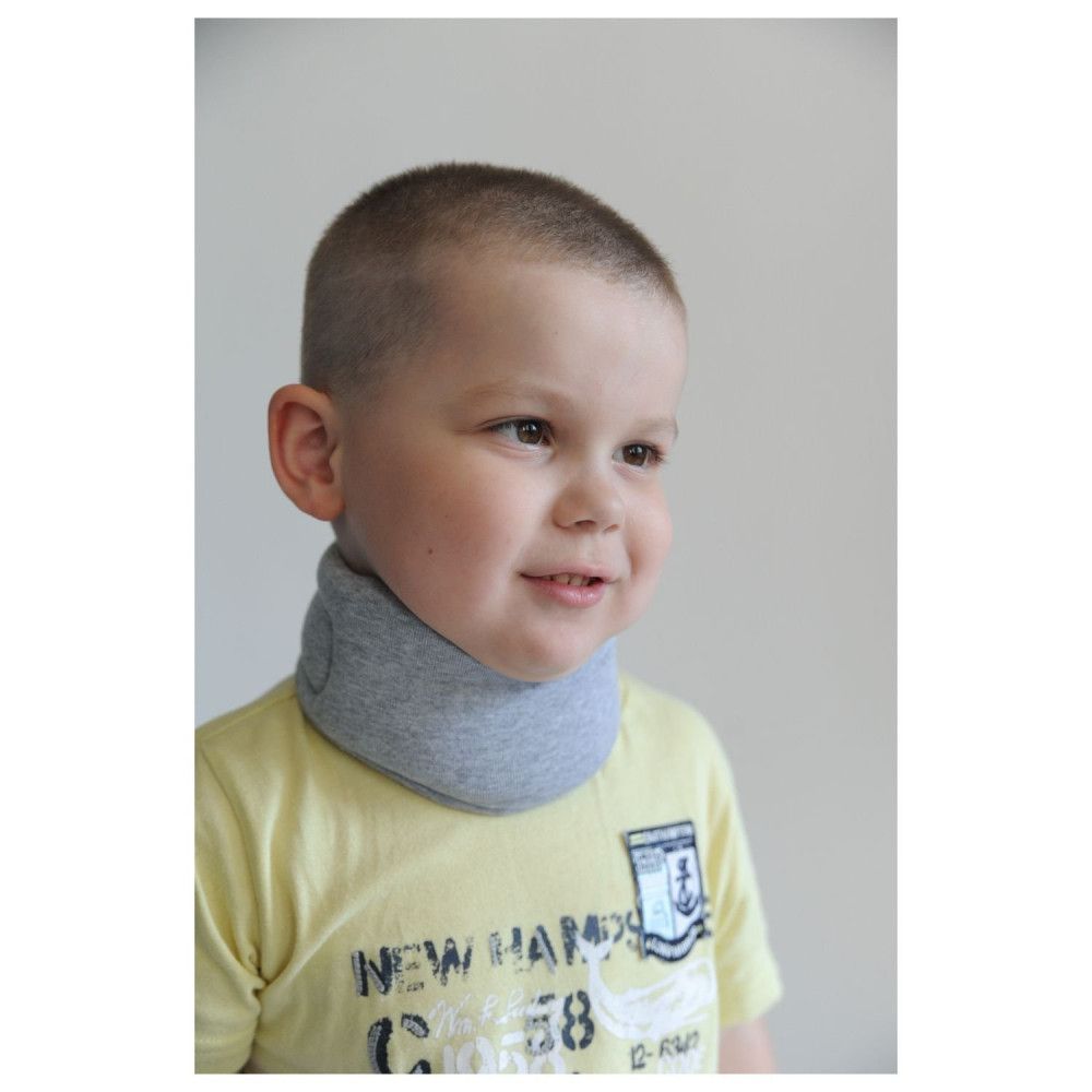 Спінена основа бандажа легка, не перевантажує дитину, але міцна, надійно підтримує шию у правильному положенні. Бавовняний чохол на виробі запобігає виникненню алергічних реакцій і подразнень дитячої шкіри, він м’який і приємний на дотик. Анатомічна форма бандажа дозволяє голові та шиї прийняти максимально зручне та природне положення. Точно регулюється на шиї за допомогою застібок-липучок.