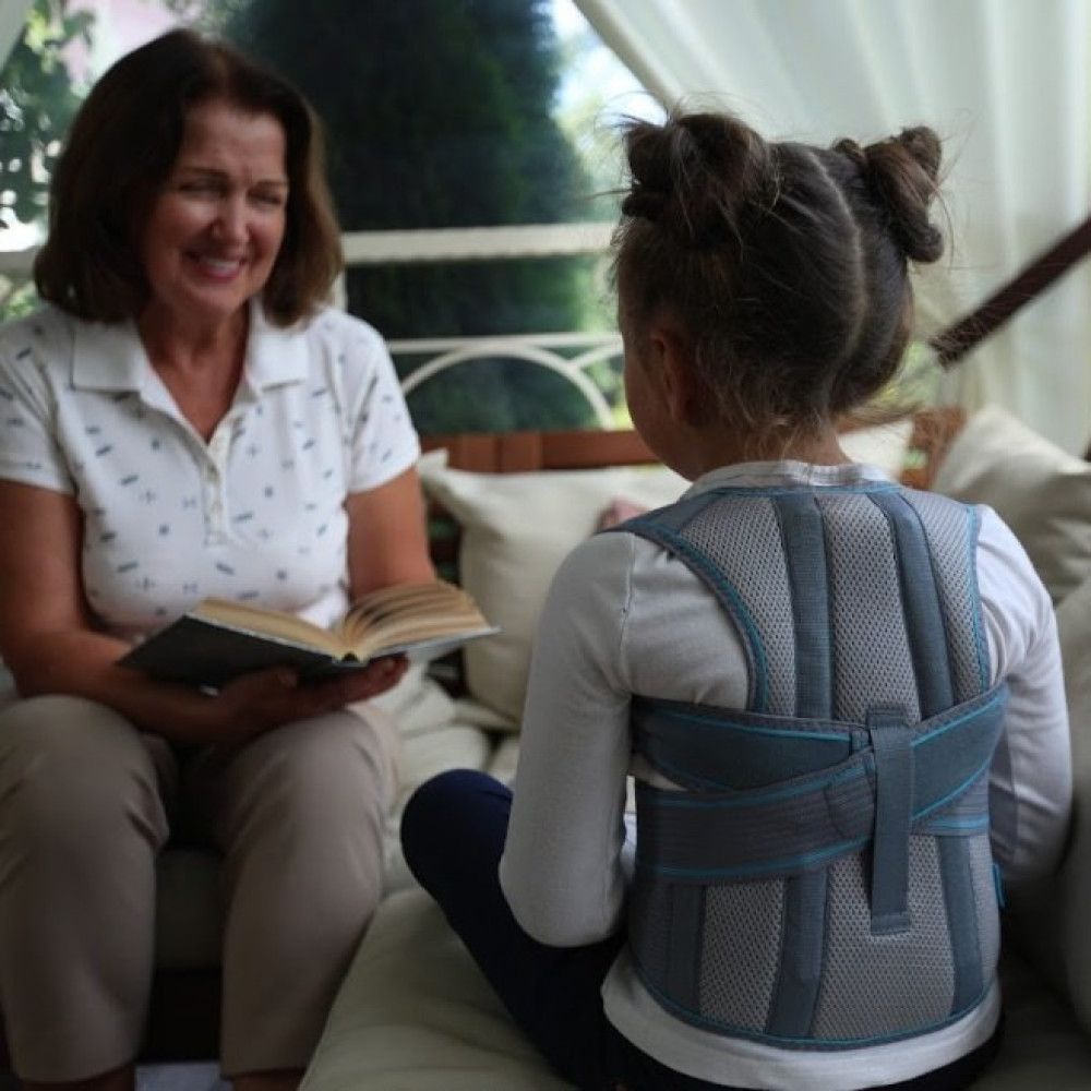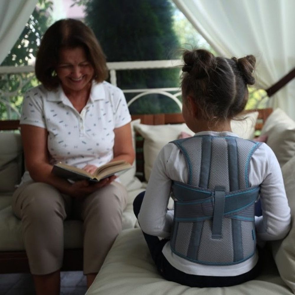Корсет розвантажує і фіксує хребет у правильному положенні. Усуваючи м’язовий дисбаланс і нормалізуючи тонус м’язів спини, виріб ефективно усуває асиметрію (якщо вона є). Наплічні лямки розвертають плечі й не дозволяють дитині сутулитись. Так створюється правильний м’язовий стереотип і формується гармонійна постава.