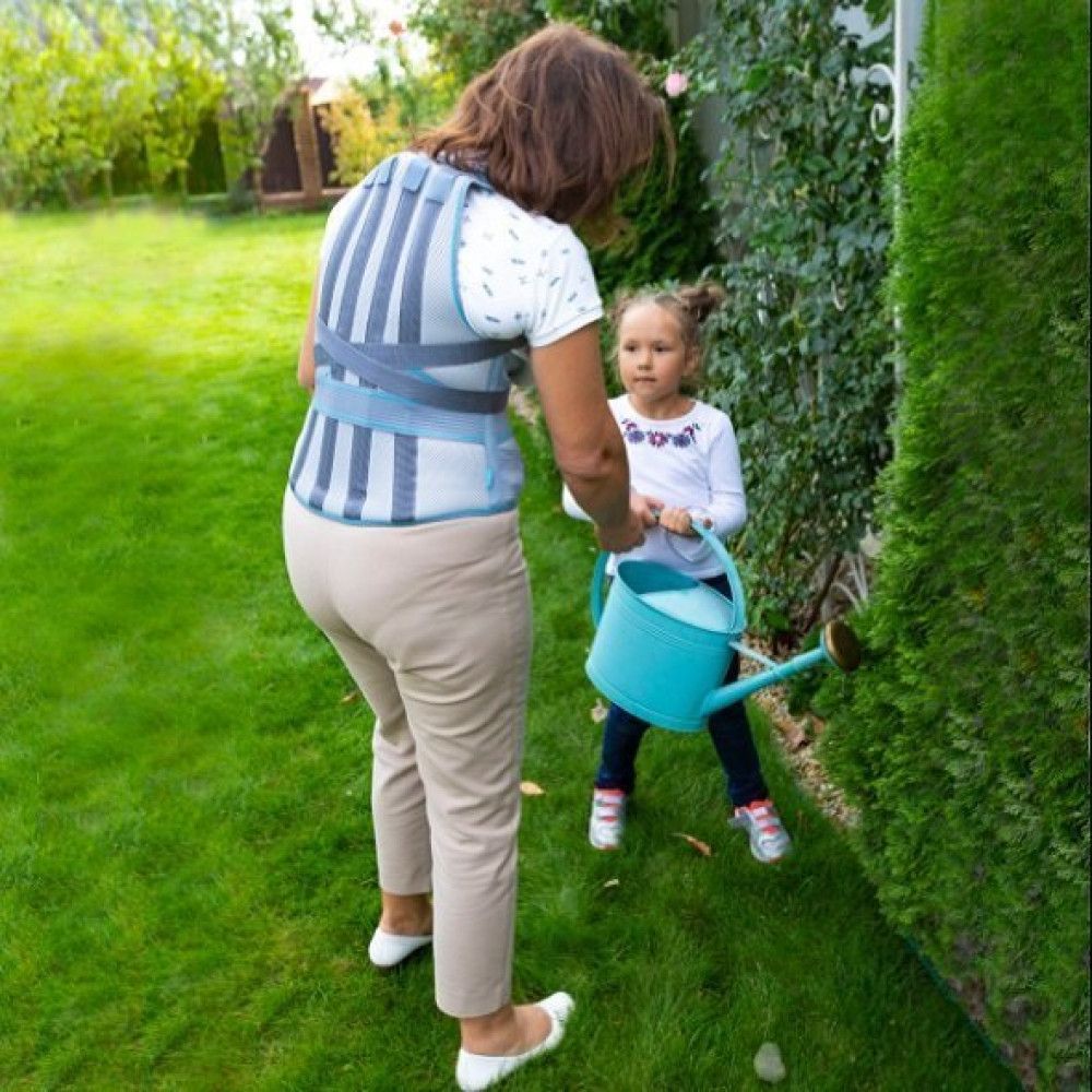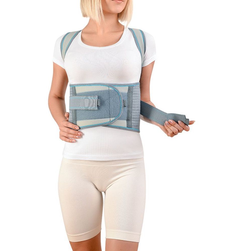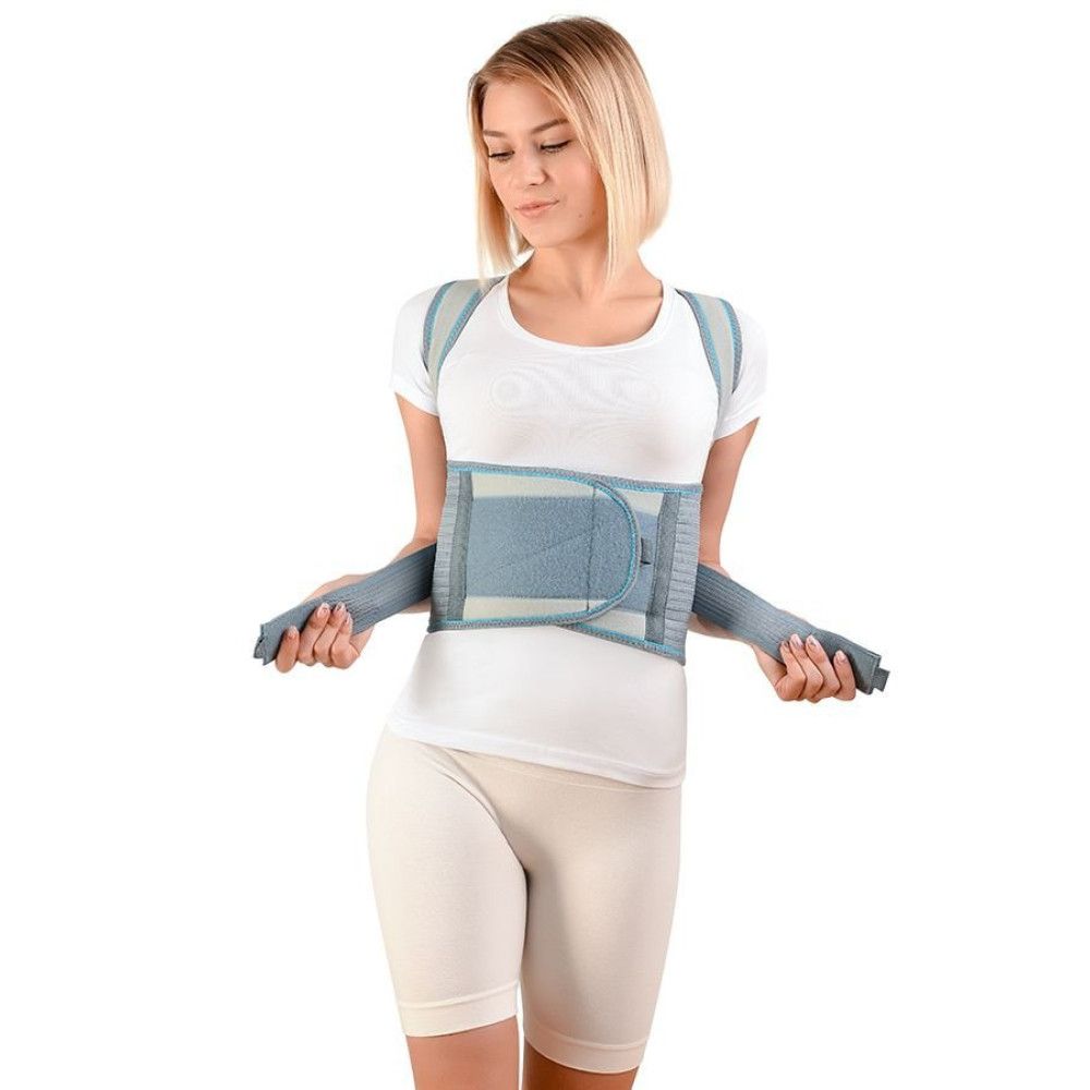 Коректор постави завдяки металевим ребрам жорсткості й наплічним лямкам поступово виправляє порушення постави. Фіксує, стабілізує й розвантажує грудний відділ хребта, нормалізує тонус м’язів спини, знімає біль. Додаткові стрічки дозволяють припасувати виріб по фігурі й самостійно регулювати ступінь натягу для максимального комфорту. Завдяки використанню повітро- й вологопроникної тканини шкіра під корсетом залишається сухою й не перегрівається.
