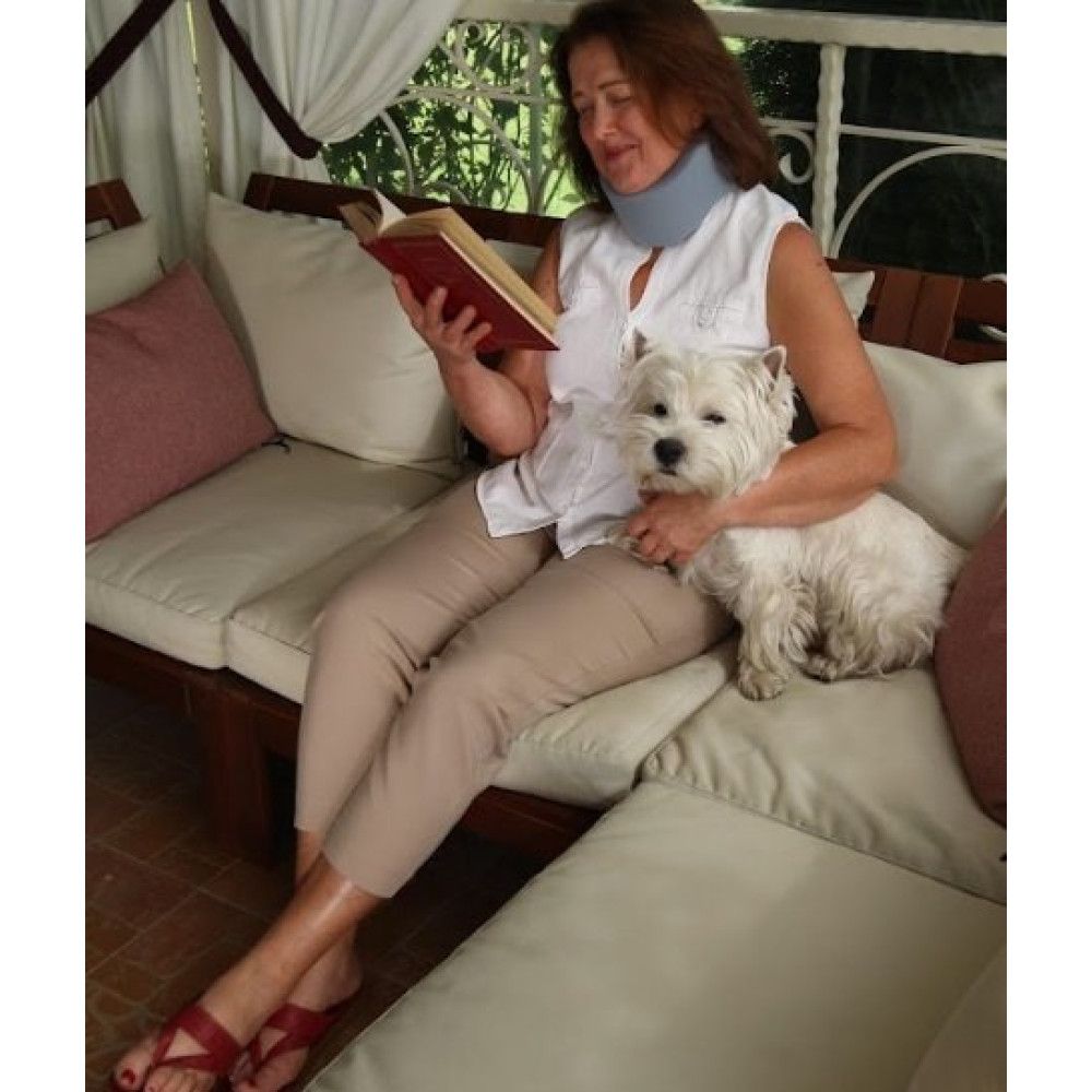 - Розвантажує шийні хребці та м'язово-зв'язковий апарат шиї;