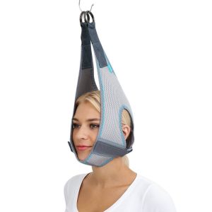 - Розвантажує й розтягує шийний відділ хребта.