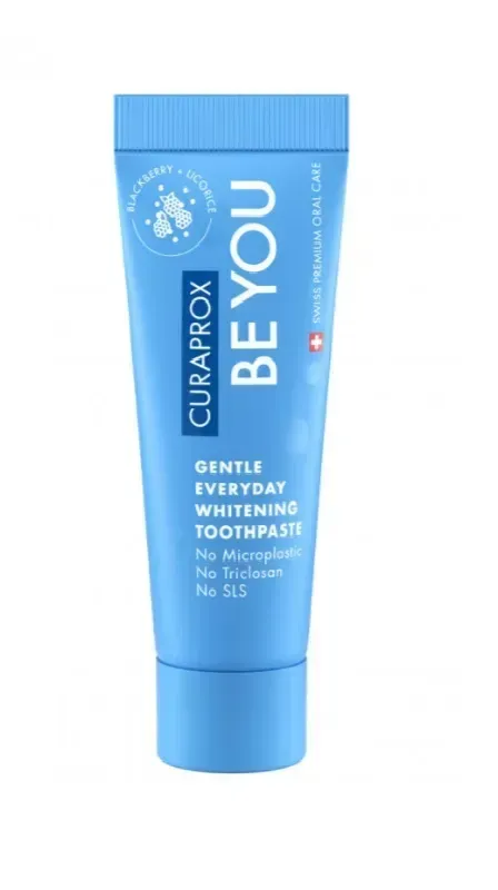 Освітлююча зубна паста Curaprox Be You Blue, блакитного кольору, 10 мл., RDA - 50 Смак: Ожина & Лакриця