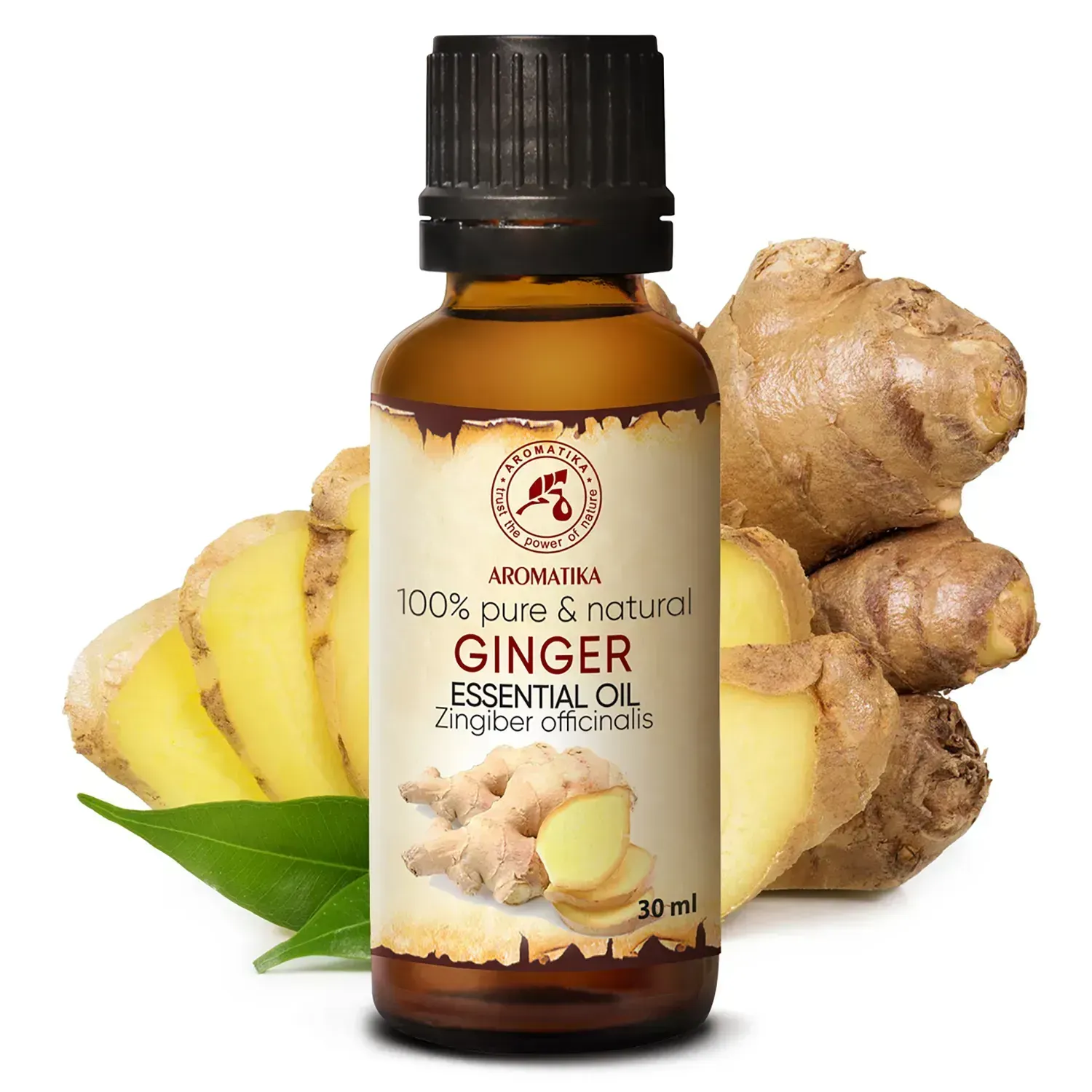 Імбирна ефірна олія Ароматика – це ефірна олія, отримана з кореневища імбиру лікарського. Імбир – унікальна рослина, в корені якої міститься величезна життєва сила. Тому закономірно, що її ефірна олія широко застосовується як тонізуючий і відновлювальний сили засіб. Ванна з імбирною ефірною олією допоможе Вам зігрітися після повернення додому в холодну погоду, а ось ароматизація приміщення цим засобом зніме втому, впорядкує нервову систему, допоможе позбутися апатії та сприятиме поліпшенню пам'яті. Додавши в косметичний засіб ефірну олію імбиру можна отримати відмінну тонізуючу та протизапальну речовину. Особливо корисна у догляді за жирною та проблемною шкірою обличчя і тіла.