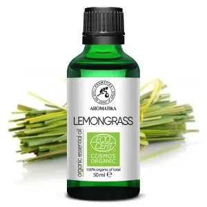 Органічна ефірна олія лемонграсу – це ефірна олія, отримана з надземної частини лимонної трави (лемонграсу), сировина для якої вирощувалась в екологічно чистих районах. Ефірна олія не містить пестицидів, ГМО, наноматеріалів, феноксіетанолу, синтетичних домішок, ароматизаторів чи барвників. Екологічність цього косметичного продукту підтверджено сертифікатом ECOCERT (ЕКОСЕРТ), виданим відповідним органом по сертифікації та контролю органічних продуктів, створеним у Франції в 1991 році. Працюючи в більш ніж 80 країнах, він став однією з найбільших організацій по сертифікації органічних продуктів у світі та одним з найвідоміших лейблів в галузі стандартизації натуральної косметики. Стандарт Ecocert встановлює, що інгредієнти отримані з поновлюваних ресурсів і зроблені з використанням екологічно безпечних процесів. Ефірна олія лемонграсу від бренду Ароматика сертифікована Ecocert Greenlife за стандартом COSMOS ORGANIC, за що має відповідне маркування на етикетці.