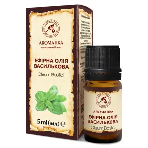 Василькова (базилікова) ефірна олія Ароматика – це ефірна олія, отримана з надземної частини однорічної трав'янистої рослини васильків звичайних (базиліку). Базилік може порадувати своїм ароматом не тільки гурманів і любителів прянощів. Його ефірна олія має тонізуючу властивість, яка успішно застосовується в косметології та ароматерапії. Ефірна олія василькова зі своїм насиченим ароматом якісно доглядає за жирним і комбінованим типом шкіри, покращує її зовнішній вигляд, розгладжує та підвищує тонус в'ялої шкіри, зміцнює волосся і є однією з кращих аромаолій для подолання стресових станів, втоми. При регулярному використанні базилікової олії, Ви відзначите чудове самопочуття і поліпшення пам'яті.