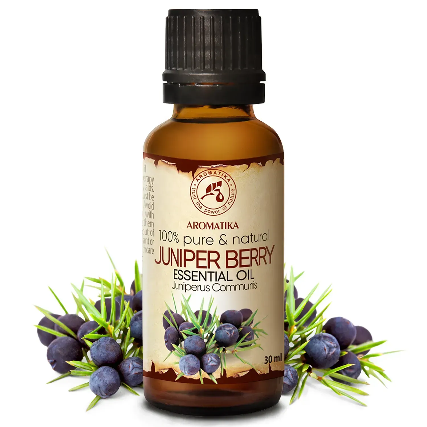 Ялівцева ефірна олія Ароматика – це ефірна олія, отримана з шишкоягід вічнозеленого хвойного чагарнику ялівцю звичайного. Ефірна олія ялівцева активізує розумову діяльність, застосовується для ароматизації приміщень, особливо в несприятливий осінньо-зимовий період. Олія ялівцю запобігає утворенню розтягів та стрій на шкірі, корисна при втраченій пружності та еластичності шкірного покриву. Застосовується для покращення кольору обличчя та омолодження шкіри. Ялівцева олія також допомагає зміцнювати волосся.
