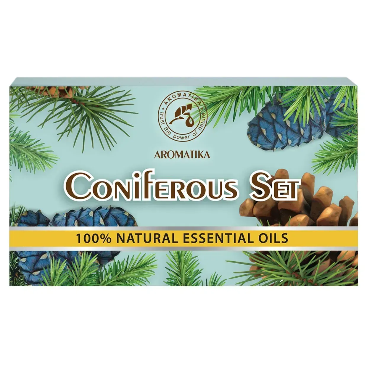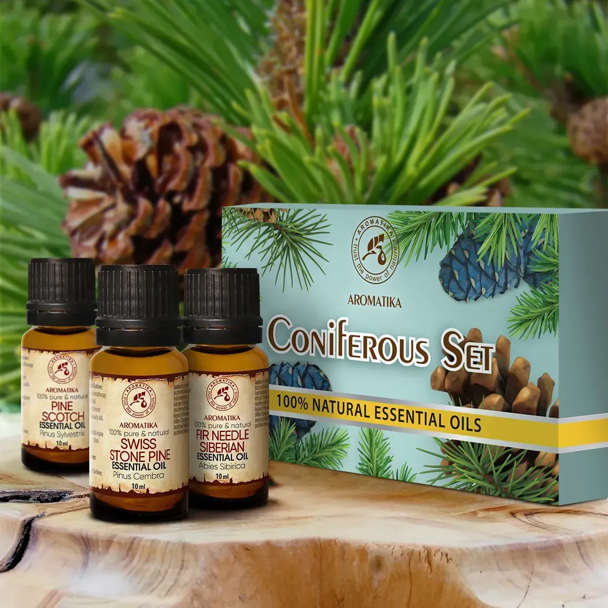 Набір ефірних олій «Хвойний» Ароматика має цілу низку м'яких терапевтичних властивостей і може застосовуватися для оздоровлюючих процедур з метою позитивного впливу на нервову, імунну та дихальну системи. Як відомо, хвойні дерева виділяють в повітря найпотужніші речовини, що очищають повітря від патогенних грибків і бактерій – фітонциди. Повітря з високою концентрацією фітонцидів позитивно впливає на нервову систему, зміцнює імунітет, підвищує життєвий тонус.
