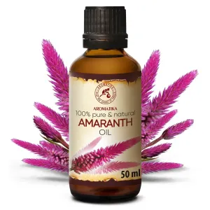 Амарантова олія має багато переваг не тільки для шкіри тіла, але і для волосся. Вона допомагає запобігти випаданню волосся, живить сухе і ламке волосся, робить пасма більш пружними та сяючими, а також гальмує передчасне посивіння волосся. Продукт позбавляє сухості шкіри голови, попереджаючи лупу.