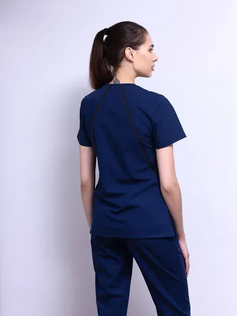 Медичний костюм "Амур" кольору неві (темно-синій) від бренду SANA — це вибір для тих, хто шукає не просто форму, а професійний, витончений і практичний образ для щоденної роботи. Глибокий синій відтінок "неві" додає костюму солідності та строгості, роблячи його ідеальним як для лікарів, так і для косметологів чи фармацевтів.