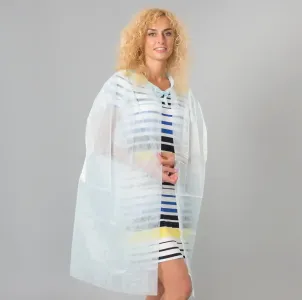 Накидка для відвідувача одноразова, на зав’язці . Горловина виробу оброблена комірцем стійкою, кінці якої переходять у зав’язку.