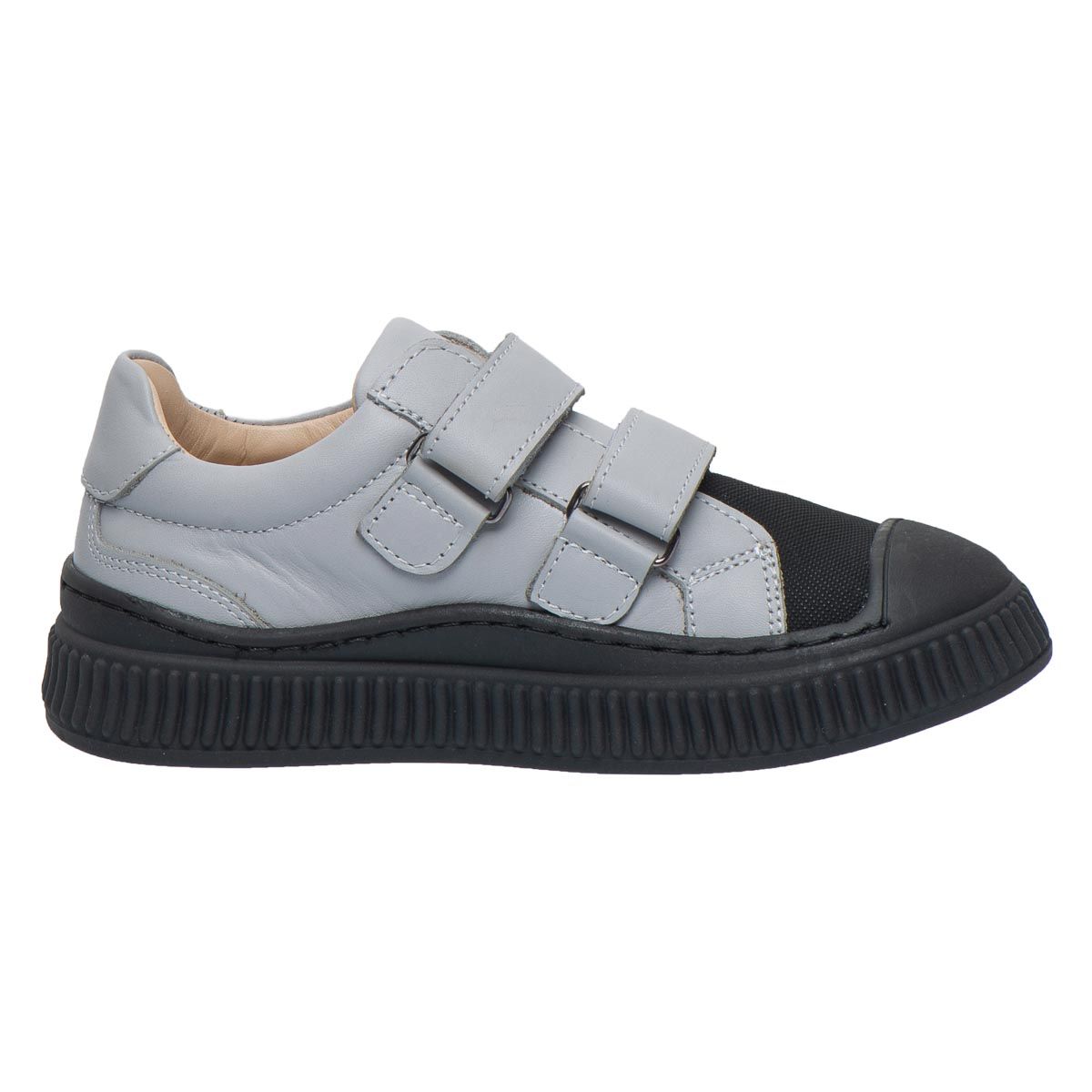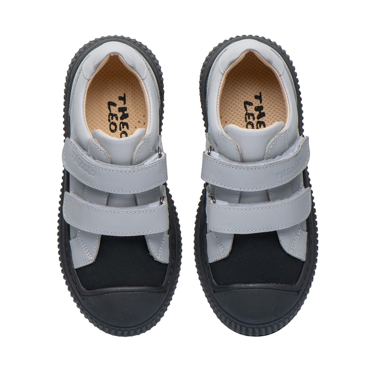 Theo Leo LEO-G156 профілактичні стильні дитячі кеди з застібками-липучками. Вони поєднують в собі функціональність, комфорт і сучасний дизайн. Верх моделі виконаний із натуральної шкіри сірого кольору. Контрастна вставка на носку плюс рельєф на підошві додають стилю і практичності. Дві липучки (велкро) замість шнурків — зручно для дітей: легко вдягати/знімати, регулювати ширину над стопою. Підкладка з натуральної шкіри створює комфорт і підтримує оптимальний мікроклімат. Підошва міцна з рельєфною текстурою та посиленим носком гарантує стійкість та амортизацію на кожному кроці.