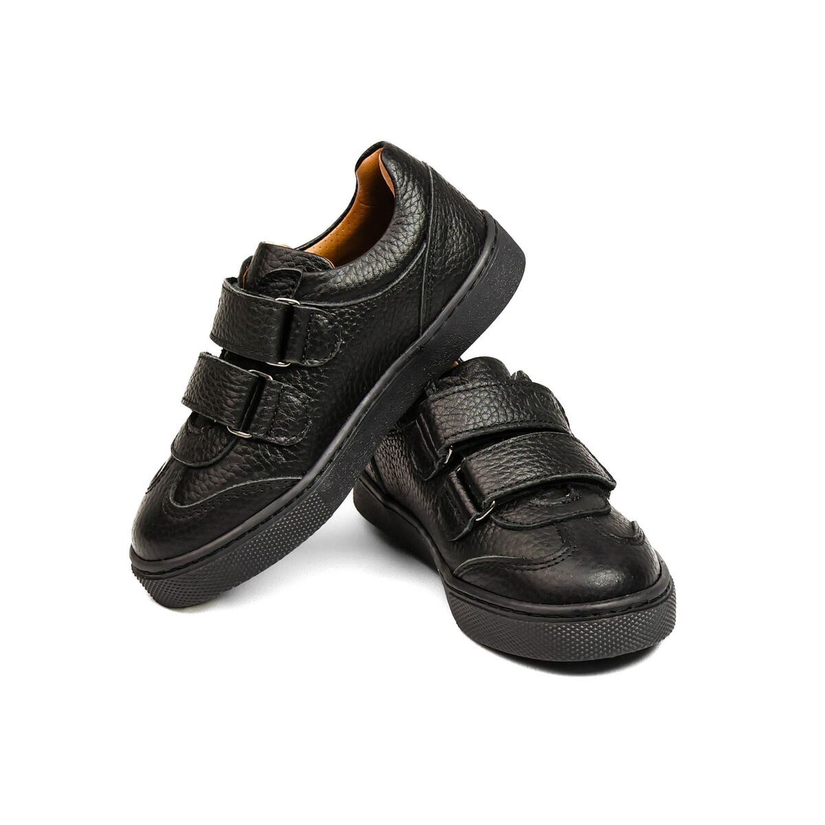 Theo Leo 1464/1-дитячі кеди низького профілю, виконані в повністю чорному кольорі. Модель має стриманий, акуратний і доволі універсальний дизайн, який підійде як для повсякденного носіння, так і для більш охайного, напівкласичного стилю одягу. Кеди пошиті з натуральної шкіри класичного чорного кольору. Для пришвидшення процесу взування в якості застібки використовуються дві надійні липучки.