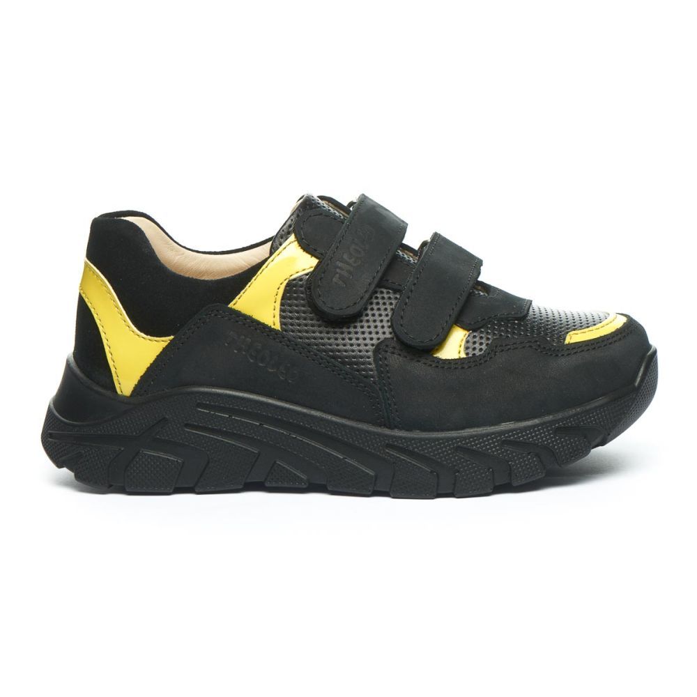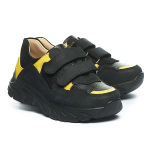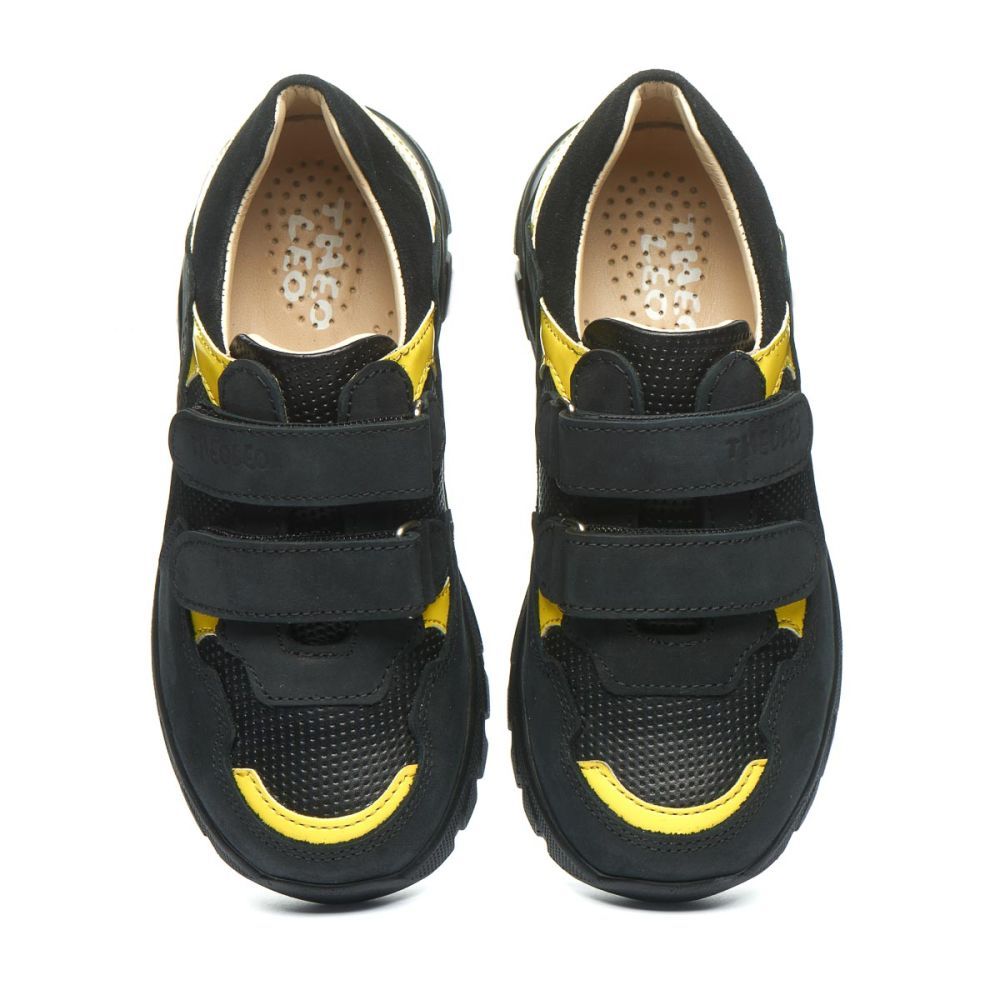 Кросівки від Theo Leo 1423 зручні кросівки з натуральної шкіри чорного кольору з яскравими жовтими вставками на модній підошві. Модель на двох широких липучках для зручного та комфортного взування. Кросівки від Theo Leo це вдале поєднання стилю та зручності.