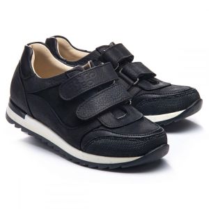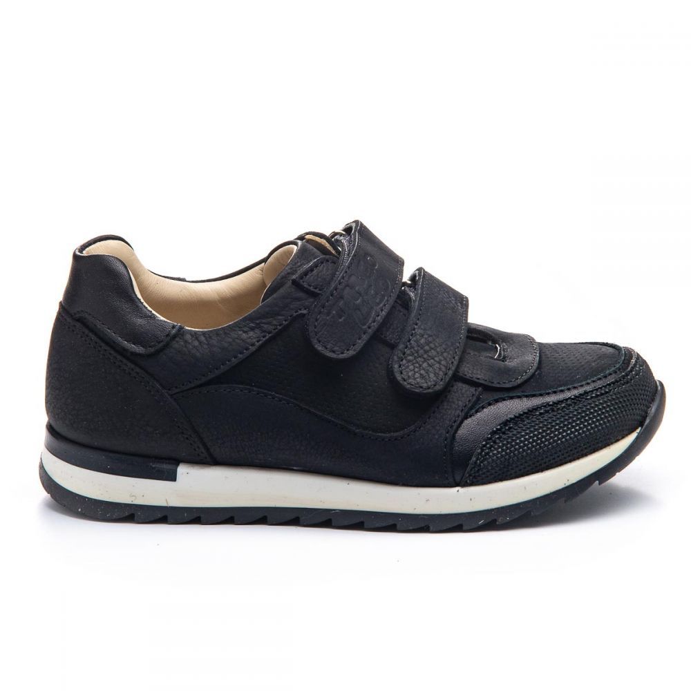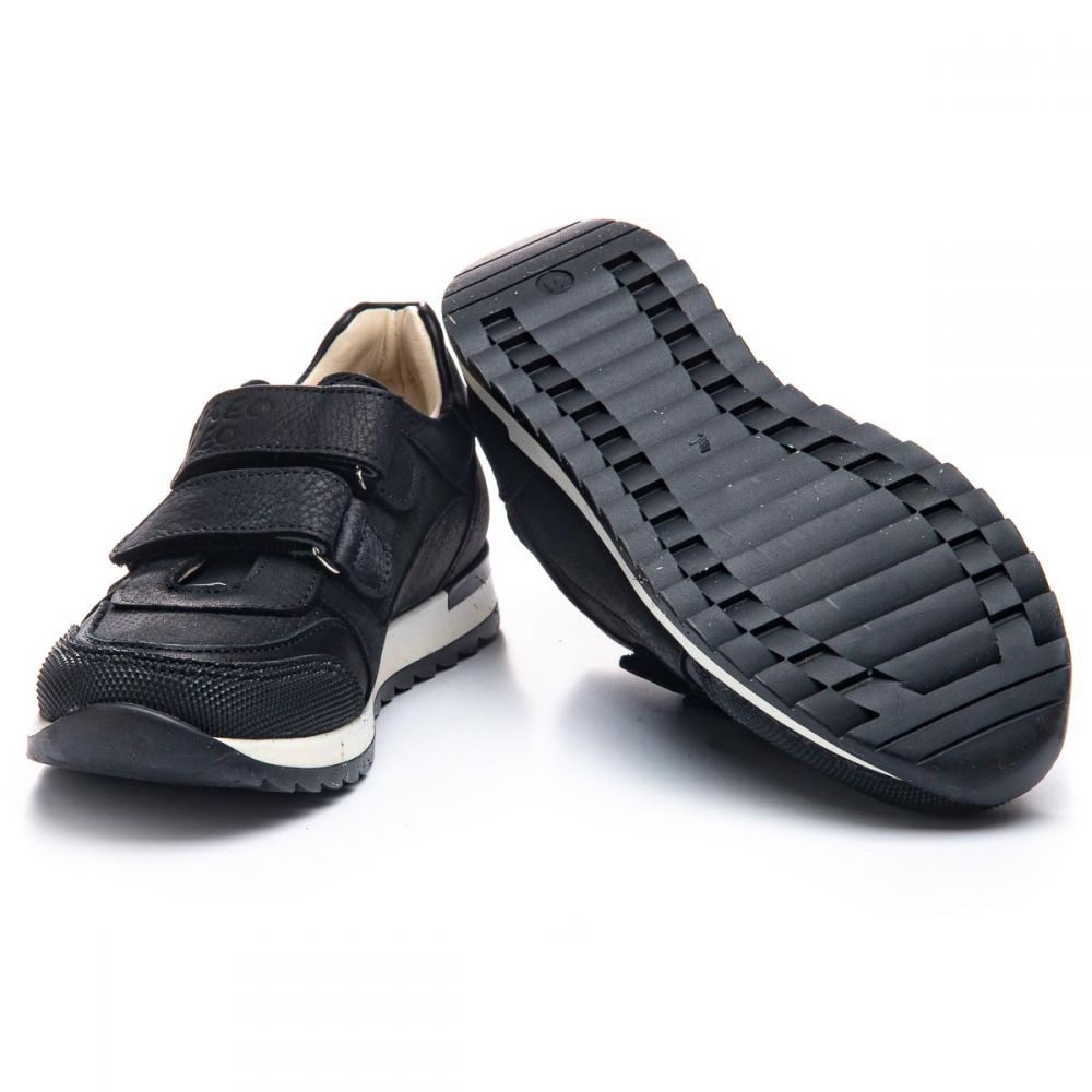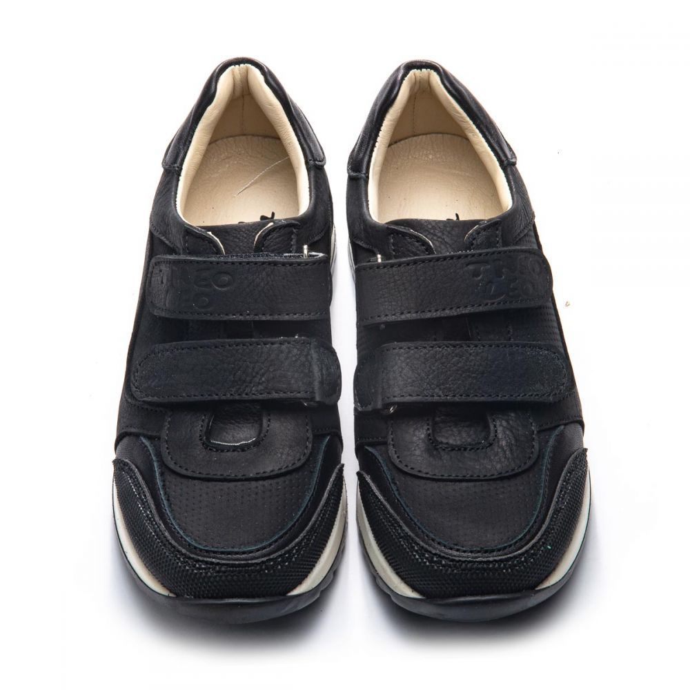 Theo Leo 1106 - зручні кросівки виконані з натуральної шкіри чорного кольору. Модель на двох липучках, для швидкого і комфортного процесу взування. Устілка і підкладка - натуральна шкіра. Присутній анатомічний супінатор. Підошва виконана з термопластичної гуми, не ковзає і добре амортизує. Добре підійдуть як в школу, так і для активних буднів.