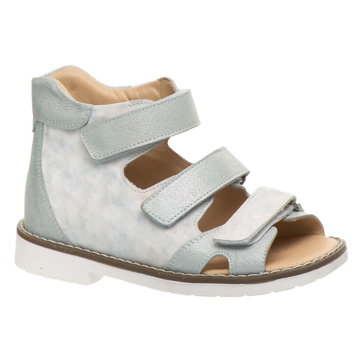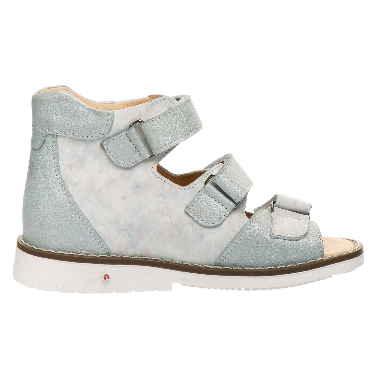 Босоніжки оснащені устілкою з анатомічним супінатором та підкладкою з натуральної шкіри. За допомогою трьох надійних застібок-липучок можна відрегулювати повноту ніжки, надійно фіксувати взуття на нозі та легко знімати.