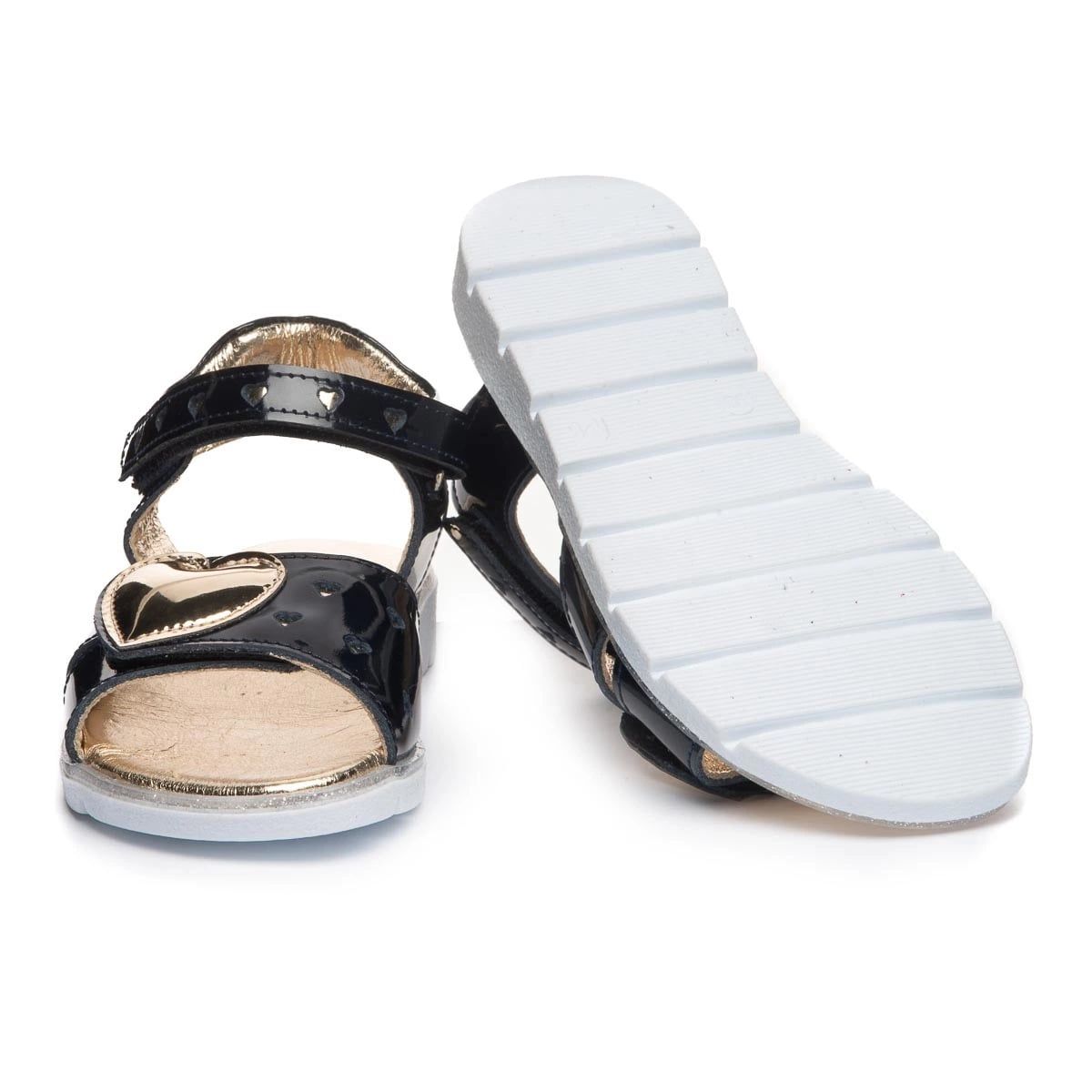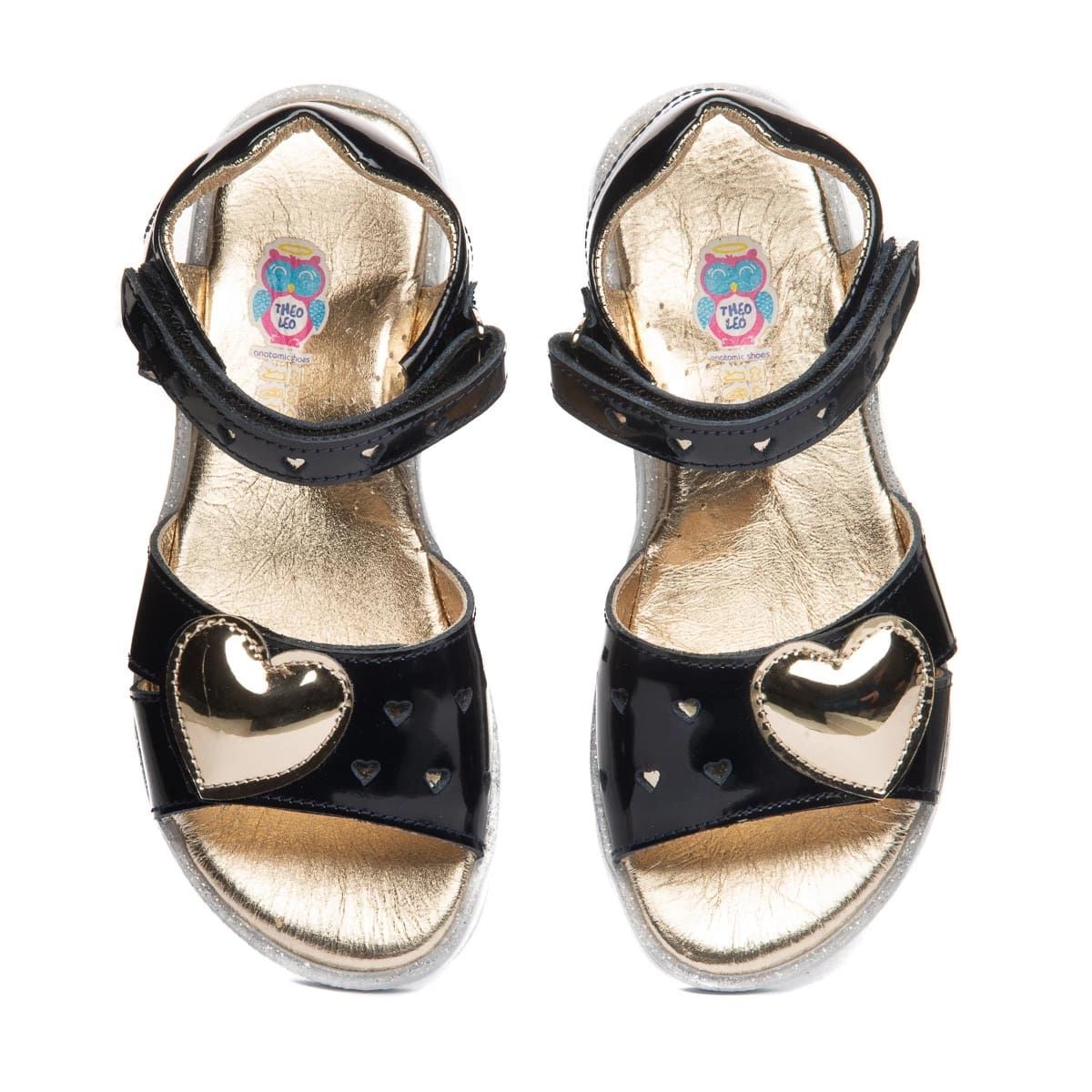 THEO LEO 1263 елегантні лаковані сандалі для дівчинки в темно-синьому кольорі є ідеальним вибором для стильного і комфортного літнього взуття. Шкіряна устілка золотого кольору не тільки красиво виглядає, а і забезпечує додатковий комфорт під час носіння завдяки наявності анатомічного супінатора. Лакована поверхня із стильним блиском виглядає дуже привабливо і робить їх ідеальними для будь-яких випадків, від повсякденного носіння до особливих подій.