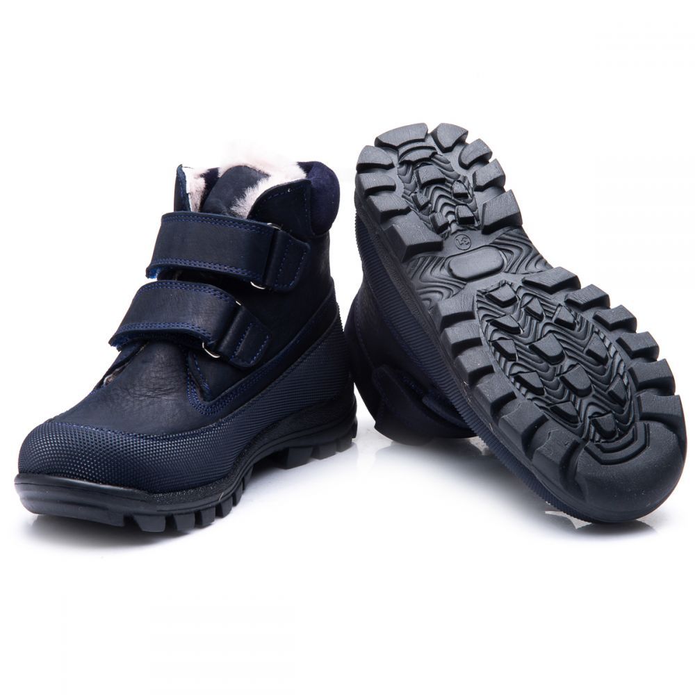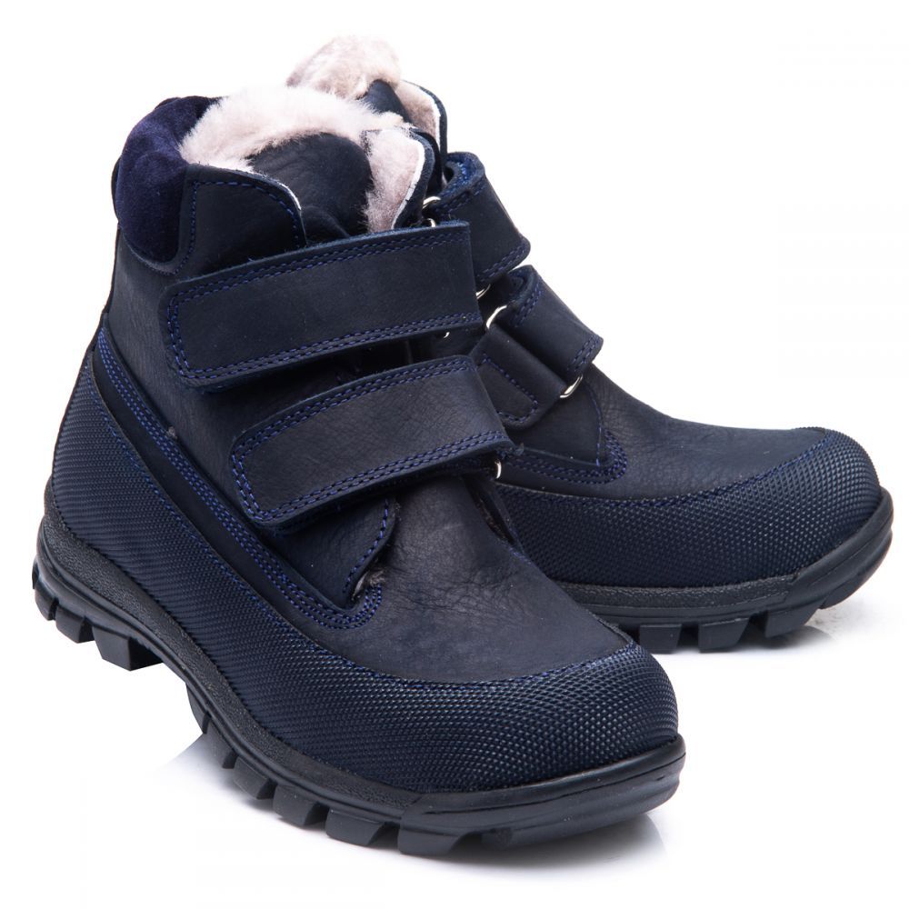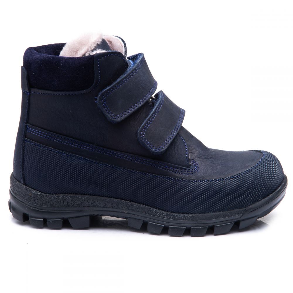 Theo Leo 855 - комфортні зимові черевики з натуральної шкіри темно синього кольору. Взуття фіксується на нозі за допомогою 2х липучок. Носок моделі попереду і по периметру укріплений вставкою зі зносостійкої шкіри. Всередині - натуральне хутро. У взутті супінатор і анатомічна устілка. Підошва - термопластіковая гума, не ковзає і добре амортизує.