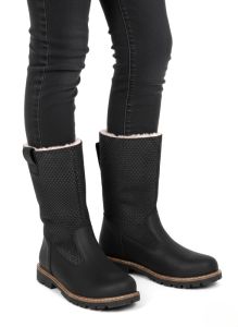 Theo Leo 1064 - зручні зимові чобітки для дівчинки з натуральної шкіри чорного кольору. Модель на блискавці, декорована вставками "під зміїну шкіру". Підкладка та устілка - з натурального хутра, з супінатором. Підошва - з каблуком Томаса, з термопластичної гуми, хороша на будь-яких поверхнях і при будь-яких температурах, не ковзає і добре амортизує.