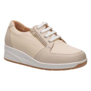 Демісезонне взуття виготовлене з натуральної шкіри, бежевого кольору, забезпечує максимальну зручність, допоможе при профілактиці та лікуванні плоскостопості будь якого типу чи вальгусної деформації.