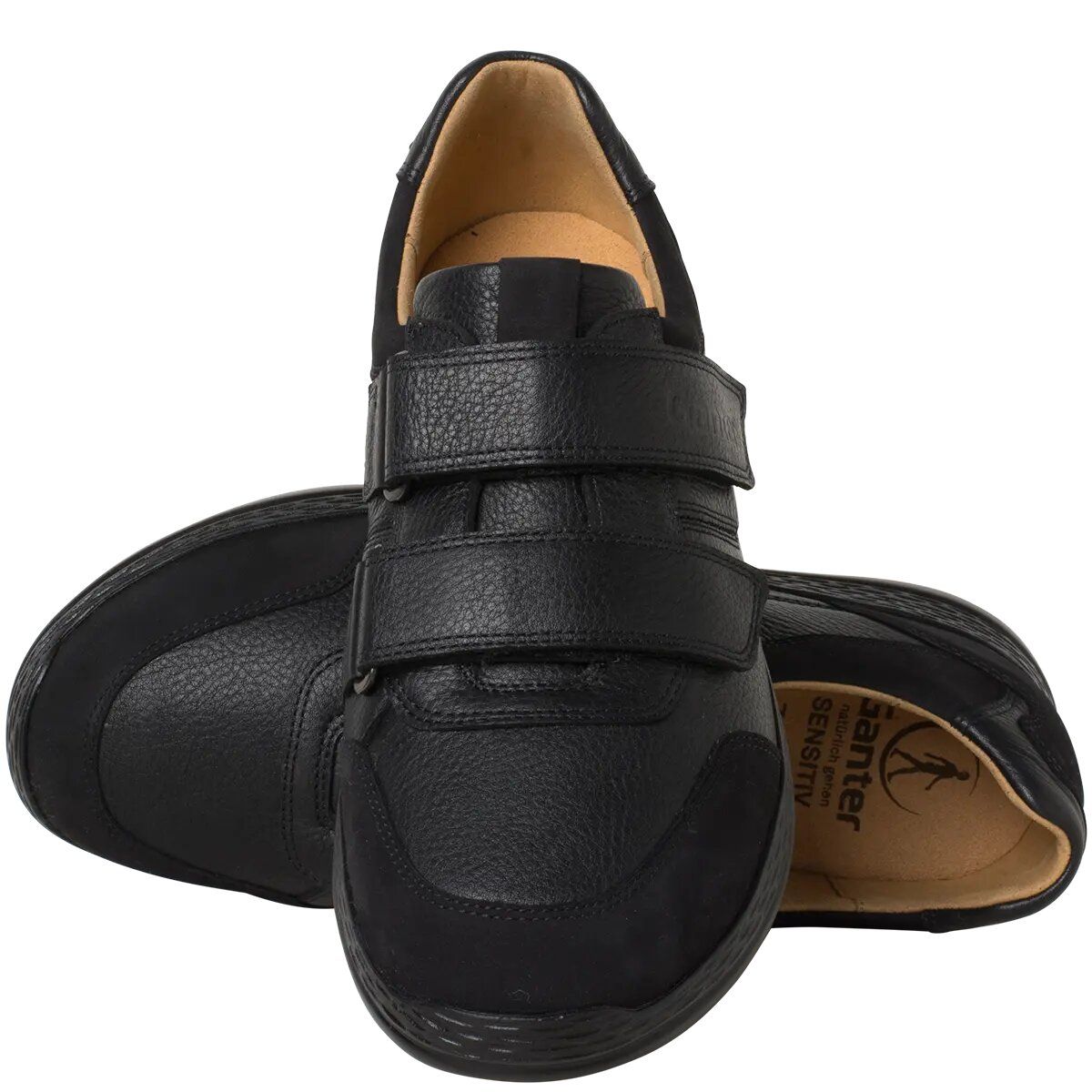 Ортопедичні кросівки Karl Ludwig від Ganter - комфорт і функціональність поєднуються в даній моделі виготовленій з високоякісних матеріалів та з лаконічним дизайном. Дане взуття для широких та чутливих стоп, також ідеально підходить для діабетиків та ревматиків. Karl Ludwig пропонує багато місця, особливо в передній частині стопи. М'яка нубукова шкіра та гладенька наппа класичного чорного кольору, м'яка підкладка з майже безшовною обробкою дозволяє уникнути точок тиску та забезпечує максимальний комфорт під час ходьби.