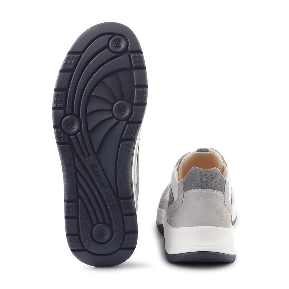Запатентована технологія кочення підтримує кожен крок, а сіро-біле поєднання матеріалу та кольорів підкреслює повсякденно-крутий вигляд взуття, яке супроводжуватиме вас як вдень, так і ввечері. Продумані деталі декору, такі як на п'яті, доповнюють дизайн. Підошва з 4-точковим перекатом відчувається на нозі легко і м'яко, покращує поставу і знімає навантаження зі спини і суглобів. Під час носіння ви відчуєте активуючий масажний ефект, що дасть вам змогу робити довші прогулянки легко та з комфортом. Концепція AKTIV може не тільки полегшити та запобігти болю в опорно-руховому апараті, але й зменшити стрес. Спробуйте та зробіть крок у майбутнє з GANTER AKTIV!