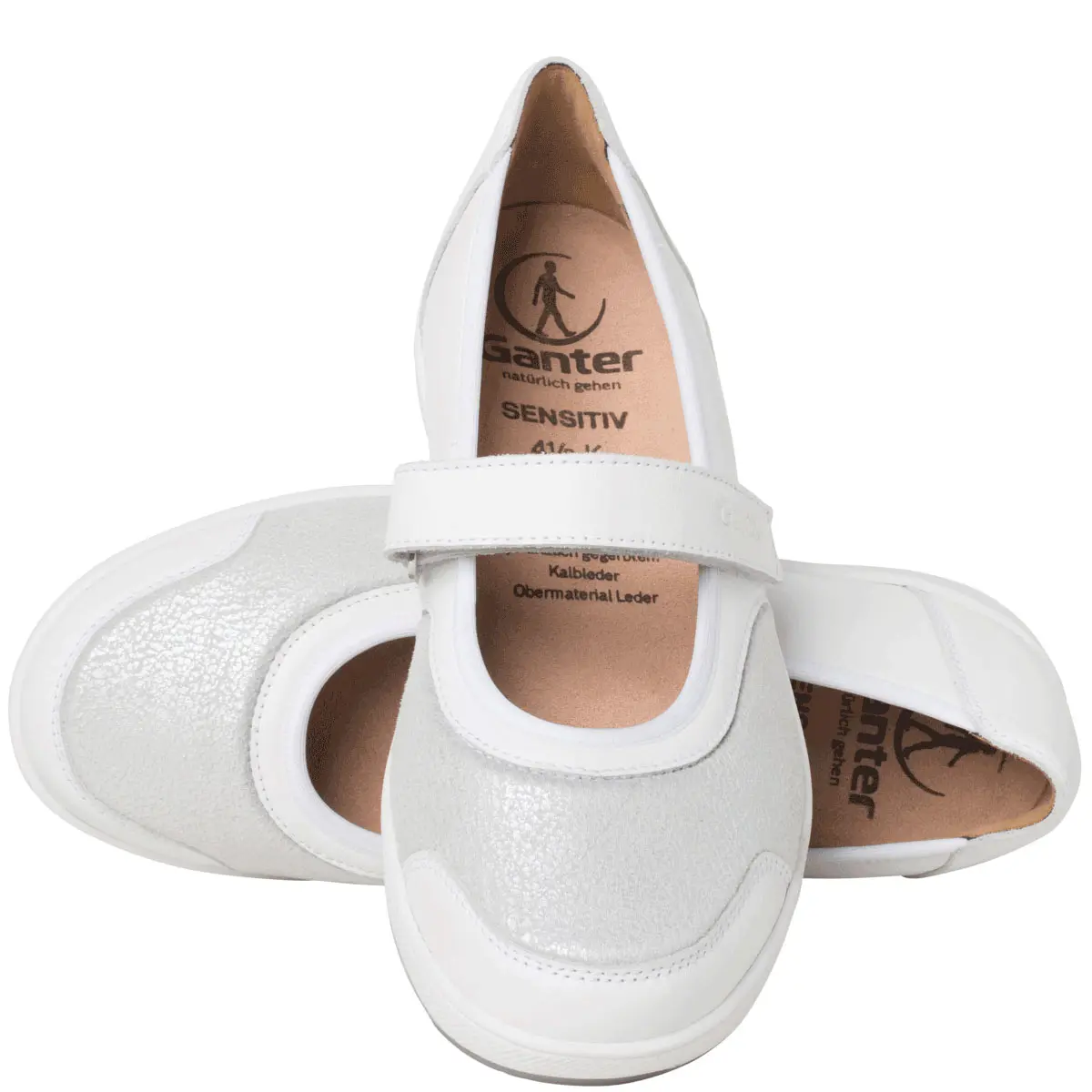 Ортопедичні мокасини GANTER Klara - спортивний дизайн зустрічається з повсякденним шиком – балетки KLARA поєднують елегантні матеріали з жіночними деталями, такими як ніжно мерехтливі еластичні вставки Glossystretch. Ширина K забезпечує достатньо місця для стопи, проте KLARA може похвалитися чистим силуетом, який ніжно та привабливо підкреслює стопу. Джинси чи сукня – яку річ зі свого гардеробу ви поєднаєте з цими світло-бежевими балеринками? Підошва кольору тону з тонкими канавками надзвичайно легка та нековзка. В рамках колекції SENSITIVE це взуття має спеціальну підкладку, яка неймовірно комфортна для стопи завдяки своїй амортизації. Шар з мікрофібри-флісу має сріблясте покриття, яке є антибактеріальним та сприяє повітропроникності. Наш вердикт: KLARA має потенціал стати вашим новим улюбленим взуттям! Це ідеальне взуття для людей з чутливими ногами. Підходить людям, що страждають на діабет і ревматизмом.