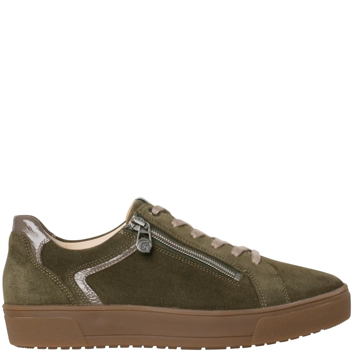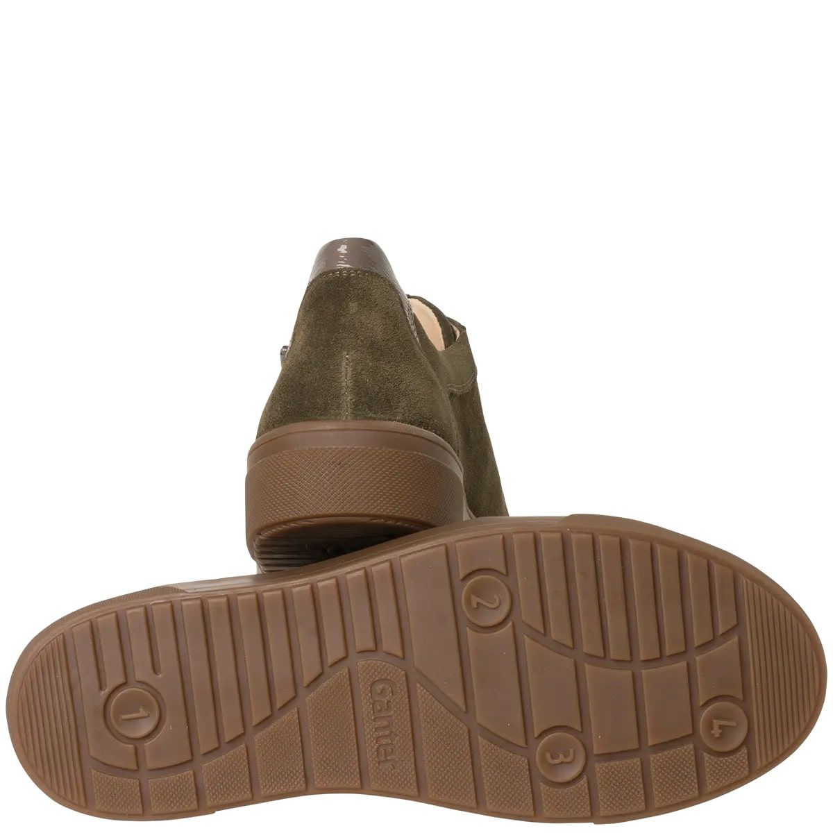 Ортопедичні кеди Helena від Ganter стильні і комфортні, вирізняються поєднаннями матеріалів та кольорів. М'яка замша поєднується з блискучими вставками з м'ятої лакованої шкіри вишуканого темно-зеленого кольору. Аплікація на п'яті створює сучасний вигляд. Сучасна підошва втілює витончений спортивний стиль, забезпечуючи чудове зчеплення.