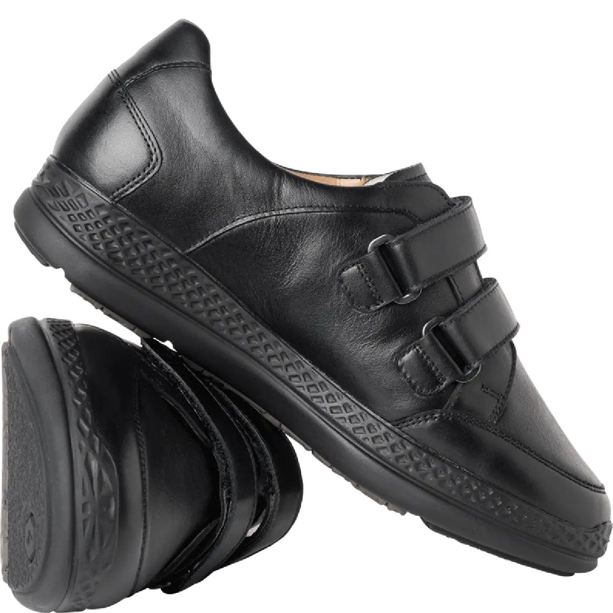 Ортопедичні кросівки GANTER Karla-Luisa з серії Sensitiv підтримує вас в активному способі життя, м'які і комфортні, створені спеціально для дуже чутливих ніг (без давили швів і зі спеціальною м'якою устілкою). Ортопедична устілка з'ємна, що дозволяє використовувати індивідуальну ортопедичну устілку. У них Вам буде комфортно в будь-якій ситуації. Еластична тканина адаптується до форми стопи, забезпечуючи ще кращий комфорт під час носіння. Виготовлене з гладкої чорної шкіри, це класичне комфортне взуття стає функціональним повсякденним супутником. Вузькі ремінці на липучках можна індивідуально регулювати відповідно до форми стопи та забезпечують надійну фіксацію. Це відмінне придбання для гардероба в стилі Casual і для володарів чутливих стоп.