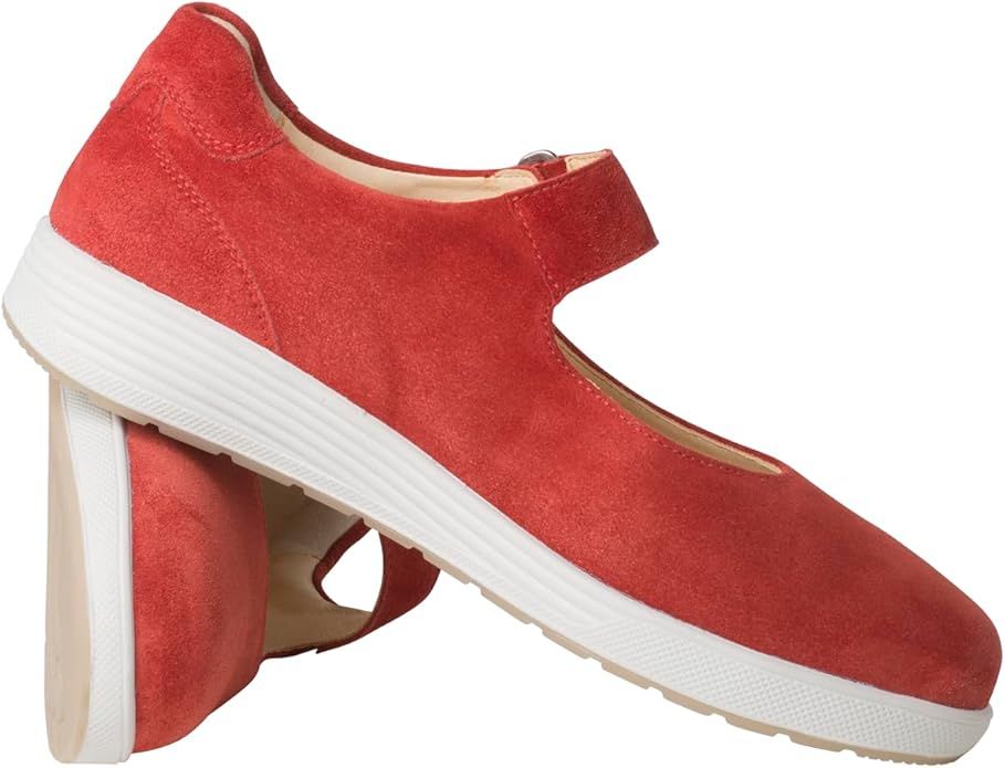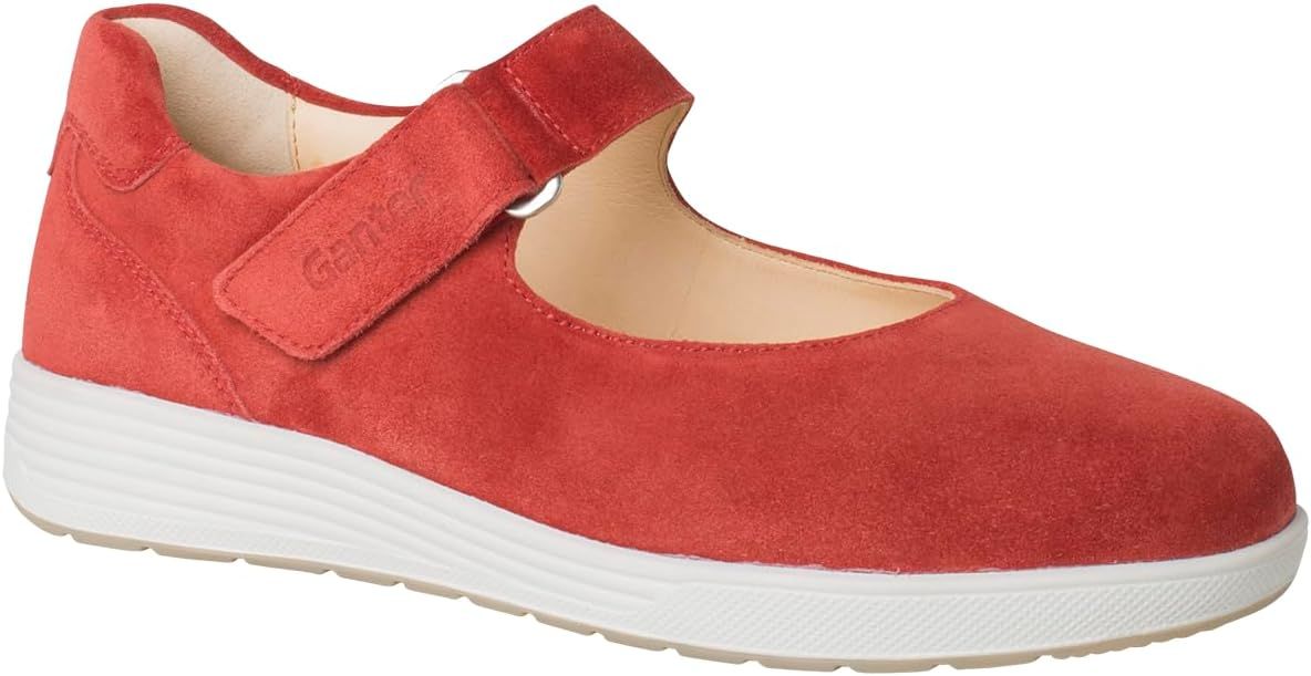 Ортопедичні туфлі GANTER Gerda новинка сезону стане спортивним і комфортним повсякденним супутником цього літа. Силует поєднує в собі жіночність і функціональність, за шириною G вражає тонким кроєм і округлим носком. Виготовлені з високоякісної замші для контрасту з білою підошвою.