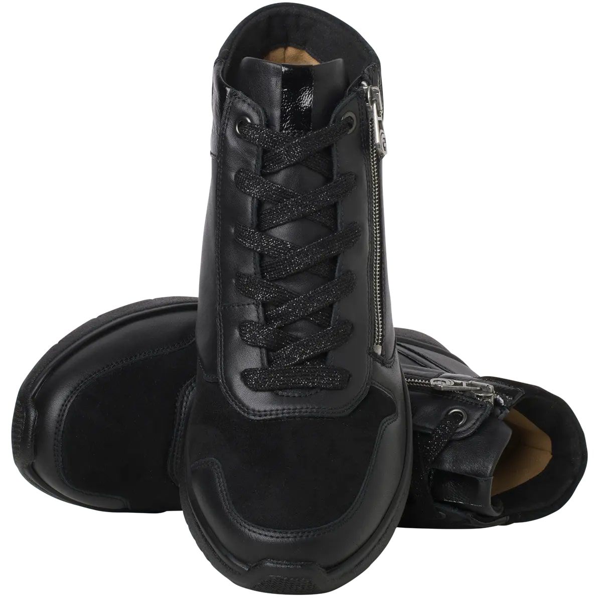 Стильні жіночі черевики Kira від GANTER універсальні черевики на шнурівці, що поєднують високоякісні матеріали з додатковою функціональністю. Модель ширини K з еластичними вставками розроблена для ширших ніг. Черевики до щиколотки з лінійки SENSITIV мають гарно підкреслений носок, що надає їм динамічного вигляду. Виготовлені з високоякісної суміші шкіри, ці чорні жіночі туфлі ідеально підходять для прогулянок містом або наступного відвідування кафе. Антибактеріальна підкладка SENSITIV характеризується м’якою функціональною підкладкою, яка дбайливо захищає чутливі ноги від натирань та приємними відчуттями під час взування. Підошва Energy-PU з невисоким підбором разом зі знімною корковою устілкою забезпечує хорошу стійкість і зручність навіть при тривалому ходінні, м’який крок та розвантажує весь опорно-руховий апарат.