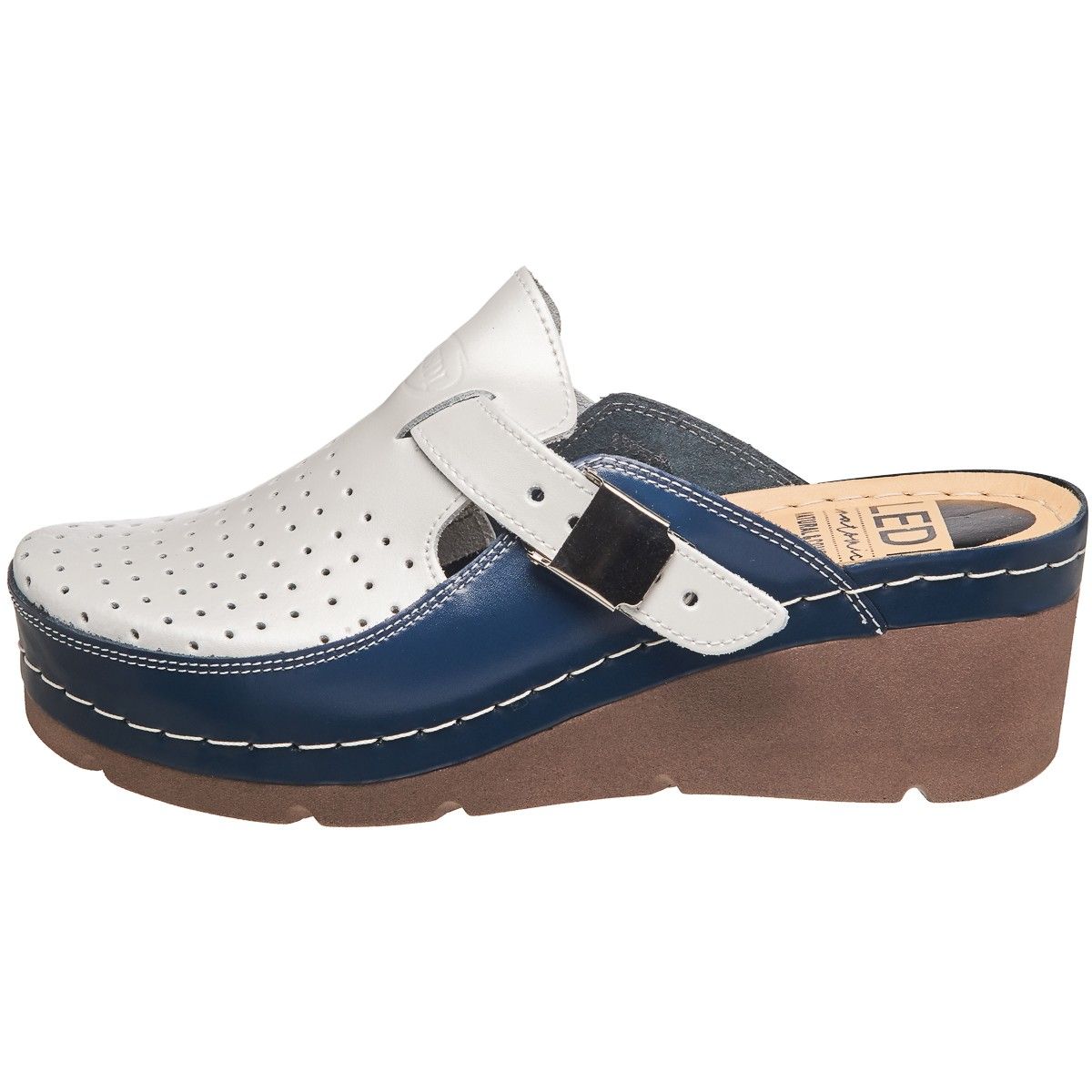 Сабо анатомічні LEDI 100 - стильні і комфортні шльопанці на танкетці з перфорацією і застібкою для регулювання повноти. Вони підтримають анатомічні склепіння стопи, захистять ноги від перевтоми, забезпечать комфорт, легкість у стопах і спині. Рекомендується до носіння: