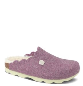 Оригінальні жіночі сабо Candy це комфортне та стильне домашнє взуття з яскравим акцентом. Модель виконана з м’якого лілового фетру з хвилястим декоративним вирізом по краю, який надає взуттю ніжного та оригінального вигляду. Внутрішня частина утеплена м’яким штучним хутром, що створює відчуття затишку та тепла.