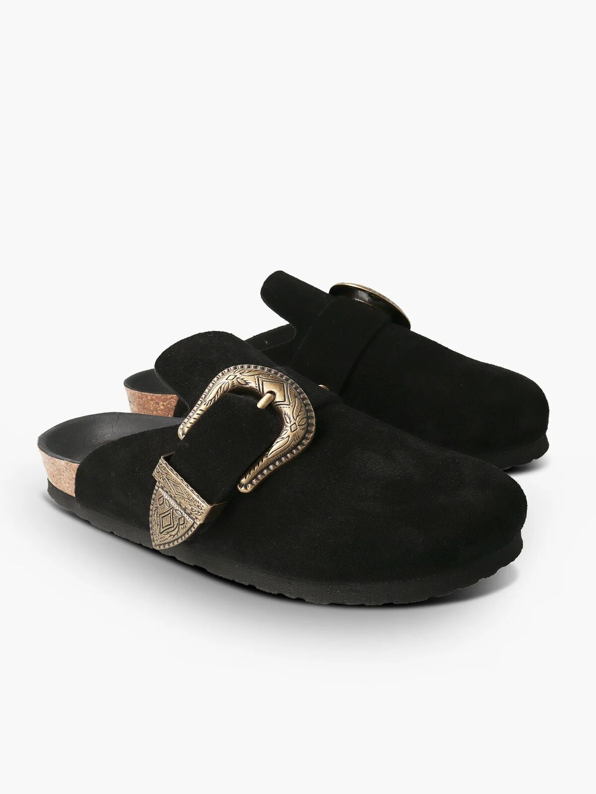 Жіночі сабо Huma від Genuins – це стильне поєднання зручності та оригінального дизайну. Модель виконана з чорного велюру, має закритий носок і характерну декоративну велику пряжку ковбойського стилю з тисненням. Широка декоративна пряжка з тисненням, регулює посадку по підйому. Взуття вирізняється мінімалістичним силуетом та акцентом на деталі, що робить його універсальним як для повсякденного, так і більш трендового образу
