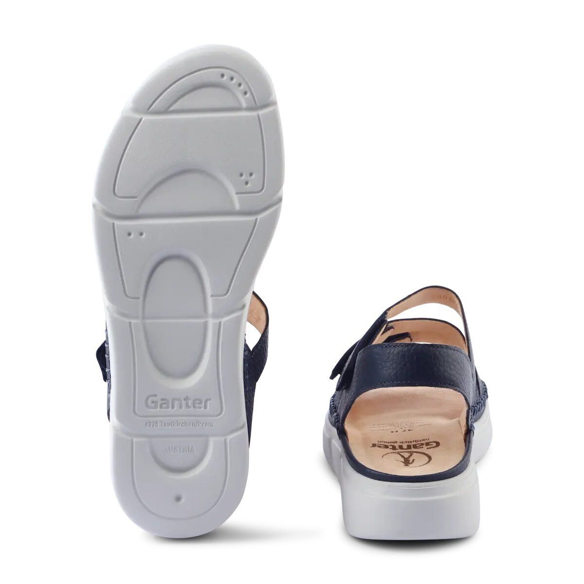 Устілка: знімна устілка Original GANTER анатомічно сформована. З нею ноги отримують підтримку поздовжнього та поперечного склепіння, розвантажується п'ята, з'являється відчуття "ходіння босоніж". Виготовлена з натурального корку та обтягнута натуральною шкірою, вона може дихати та добре поглинає вологу, забезпечує циркуляцію повітря. При необхідності її легко зняти та замінити на індивідуальну устілку.