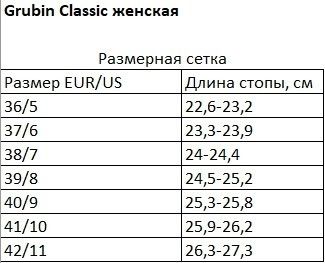 Взуття Grubin виготовляється виключно з екологічно чистих матеріалів, які безпечні для здоров'я людини і навколишнього середовища в тісній співпраці з лікарями-ортопедами. Матеріалом підошви є суміш кори Середземноморського коркового дуба з натуральним латексом, за рахунок чого підошва міцна, гнучка і володіє відмінними амортизаційними властивостями для комфортної ходьби. Верхній шар устілки - велюрова шкіра найвищої якості, яка вбирає вологу, не ковзає і не натирає. Низ підошви з високоякісної мікропористої гуми забезпечує стійкий контакт з твердими поверхнями і довговічний у носінні. Матеріали верху з натуральних і штучних матеріалів спеціально оброблені зсередини, щоб уникнути натирання шкіри стопи. Всі деталі вирізаються і кріпляться вручну.