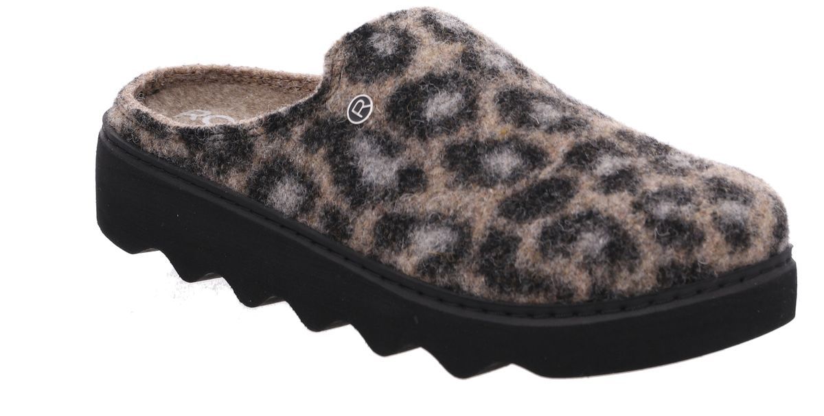 Firenze від ROHDE - тапочки в модному леопардовому дизайні, верх виготовлено з теплоізоляційної повсті з утеплюючим фетром всередині. 100% ефект гарного самопочуття: ці жіночі сабо ROHDE Firenze кольору чорний леопард загортають ваші ноги в м'який текстиль. Комфортні тапочки відмінної якості з м'якою та гнучкою підошвою. М'які, легкі, теплі, з ідеальною посадкою, мають знімну фетрову устілку.