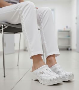 Сабо анатомічні LEDI 500 - це комфортні шльопанці білого кольору із закритою передньою частиною. підтримають анатомічні склепіння стопи, захистять ноги від перевтоми, забезпечать комфорт, легкість у стопах і спині. Рекомендується до носіння:
