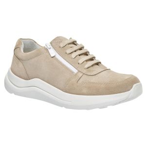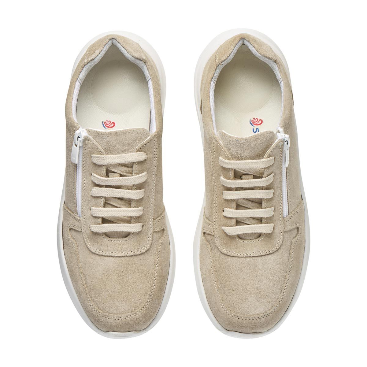 Демісезонне взуття виготовлене з натуральної шкіри нубук, світлого бежевого кольору, забезпечує максимальну зручність, допоможе при профілактиці та лікуванні плоскостопості будь якого типу чи вальгусної деформації.