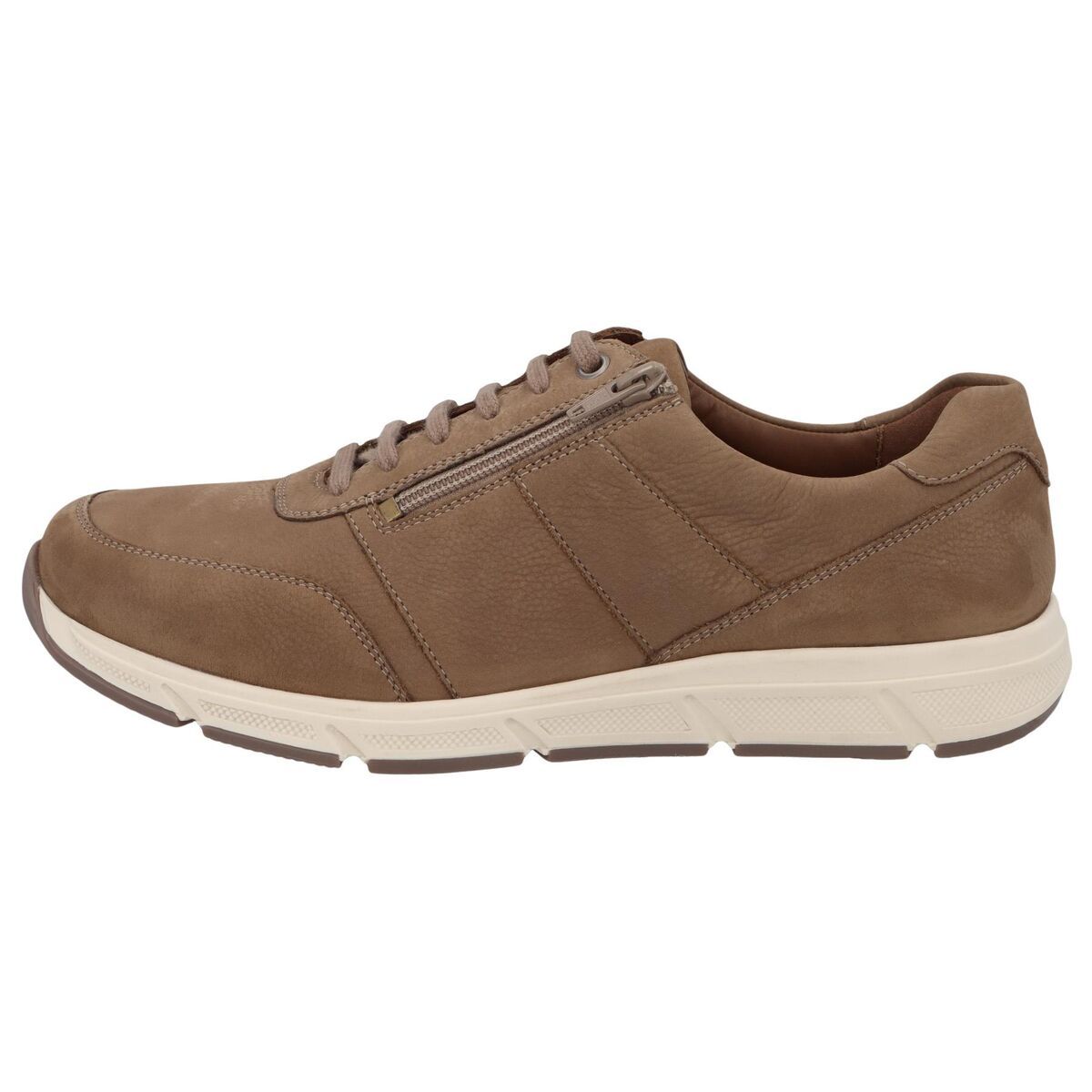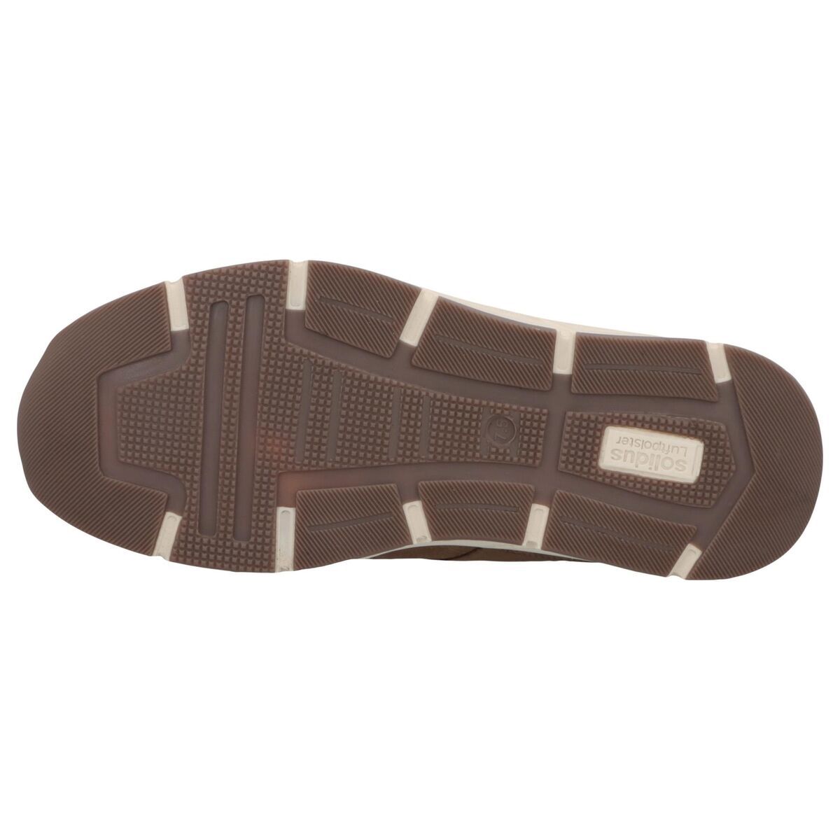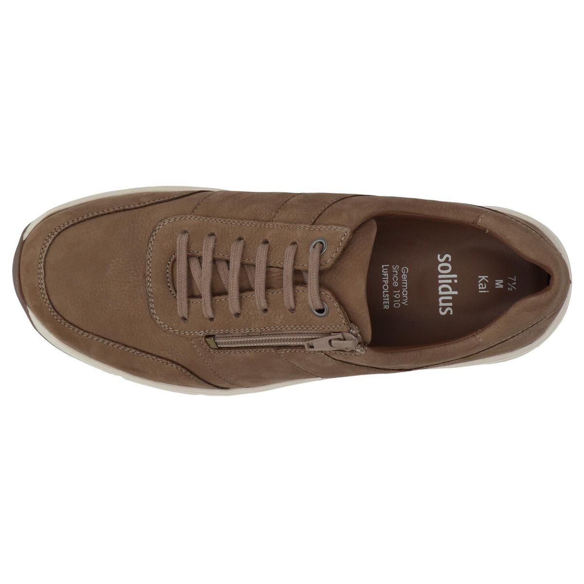 Кросівки Solidus Kai – це взуття це туфлі на шнурівці зі стриманим дизайном та вишуканим коричневим відтінком. Верх виготовлений з нубуку, ця шкіра злегка шліфована, що надає їй матової, однорідної текстури. Підкладка виготовлена з алькантари, мікрофібри, яка м’яка на дотик та витримує інтенсивне використання. Знімна устілка робить взуття придатним для використання з індивідуальними устілками. Комбінація шнурівки та блискавки забезпечує легке взування та точне застібання.