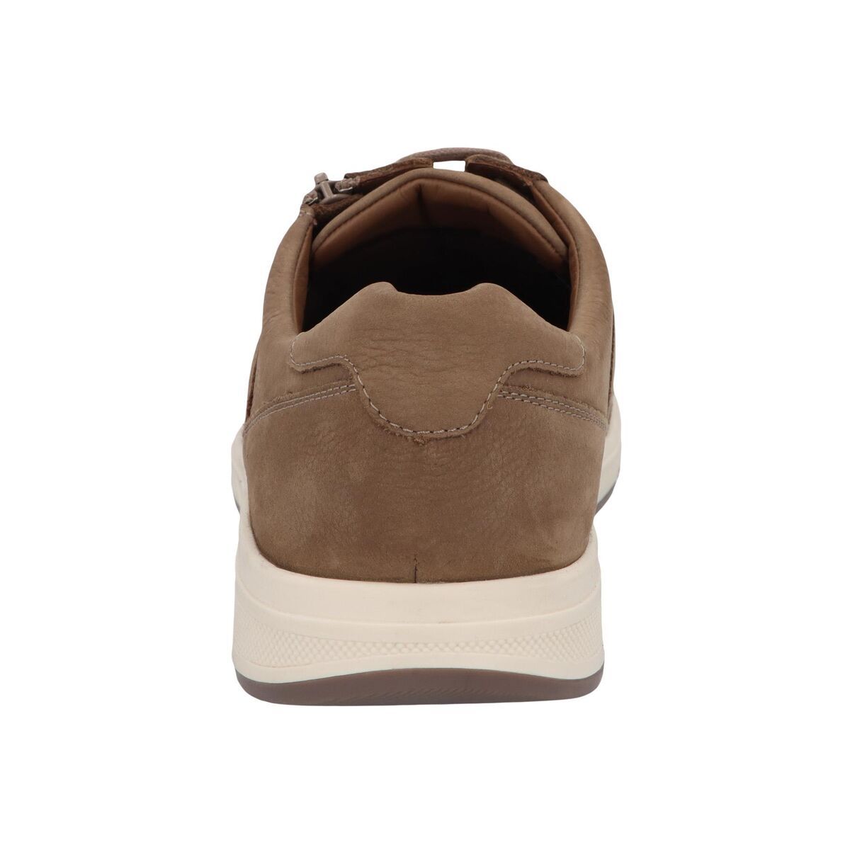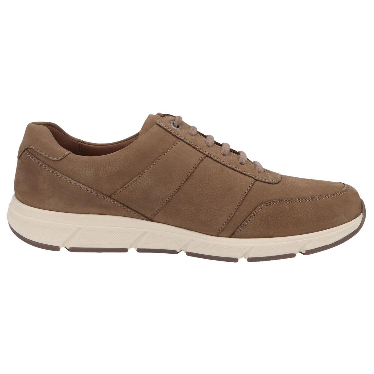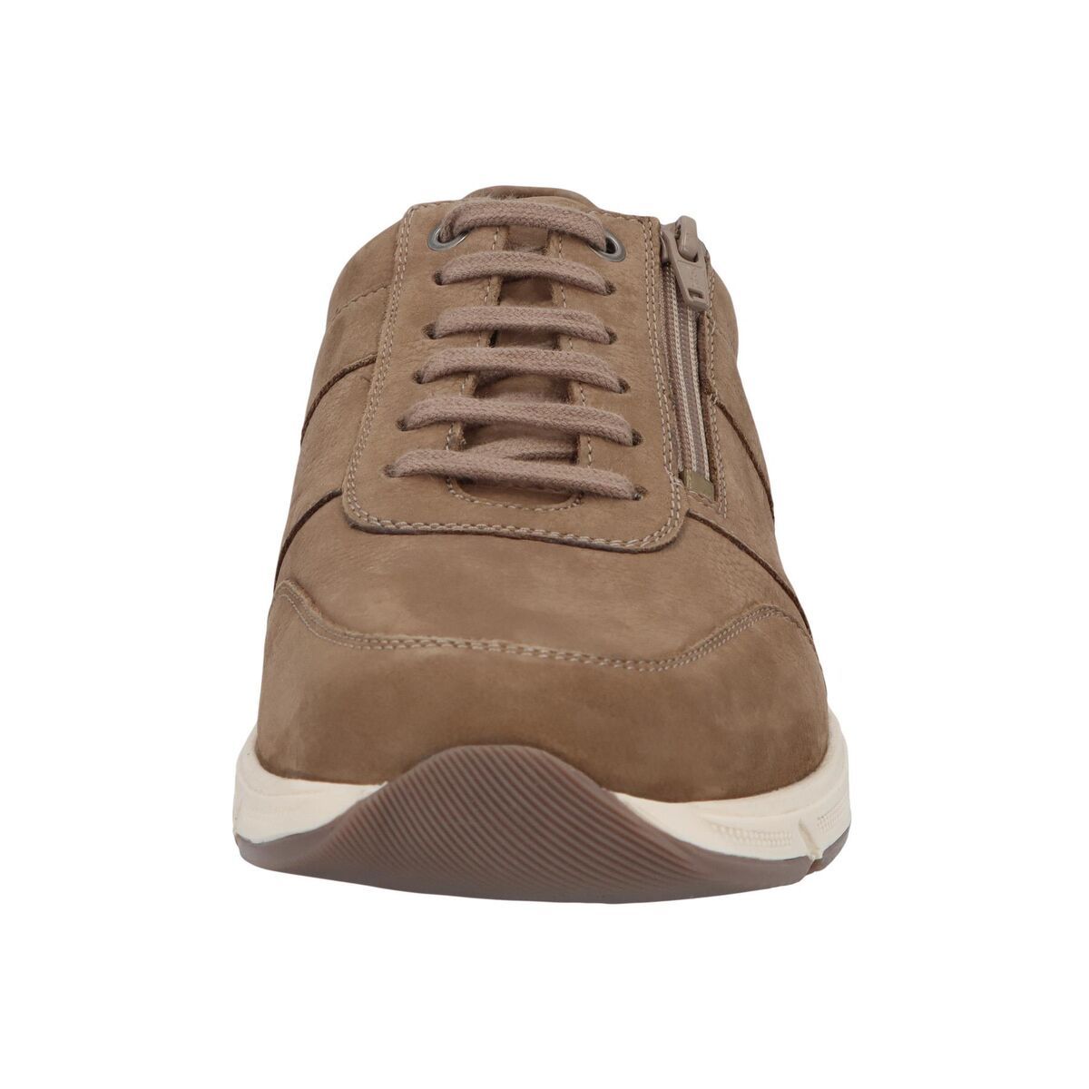 Кросівки Solidus Kai – це взуття це туфлі на шнурівці зі стриманим дизайном та вишуканим коричневим відтінком. Верх виготовлений з нубуку, ця шкіра злегка шліфована, що надає їй матової, однорідної текстури. Підкладка виготовлена з алькантари, мікрофібри, яка м’яка на дотик та витримує інтенсивне використання. Знімна устілка робить взуття придатним для використання з індивідуальними устілками. Комбінація шнурівки та блискавки забезпечує легке взування та точне застібання.