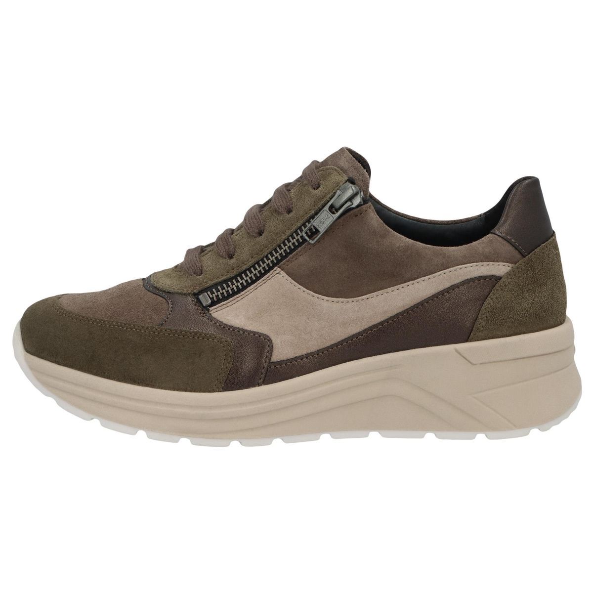 Кросівки Solidus Holly бежевого кольору з вставками хакі, на високій підошві широкою повнотою (Повнота Н) стильні та комфортні, ідеально підходять як взуття на кожен день. Завдяки шнурівці це взуття можна оптимально підігнати по нозі. А практична блискавка дає можливість з легкістю вдягати та знімати взуття. Додасть завершальний штрих до вашого образу. Відмінно підійдуть для весни чи осені.