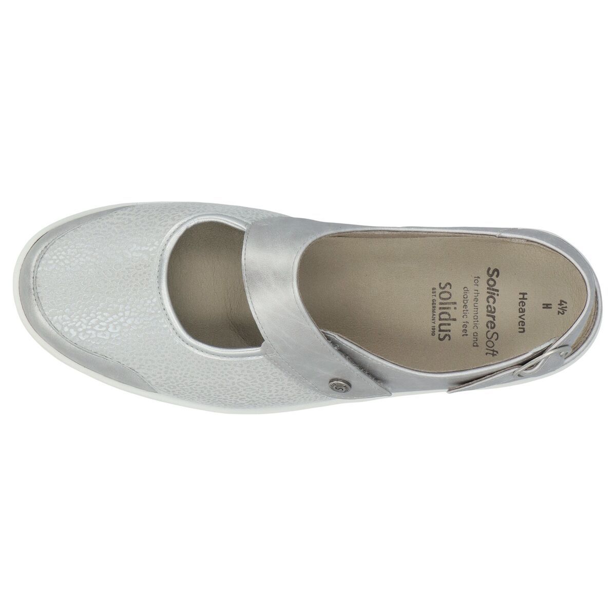 Solidus Heaven має зручну, широку колодку шириною H та знімну устілку анатомічної форми, яка ідеально функціонує як підтримка склепіння стопи, але її також можна замінити власними ортопедичними устілками. Крім того, вся верхня частина передньої частини стопи виготовлена з супер-еластичного матеріалу, що робить це комфортне взуття надзвичайно придатним для проблем з вальгусною деформацією пальців стопи, молоткоподібною деформацією пальців та іншими болючими бурситами.
