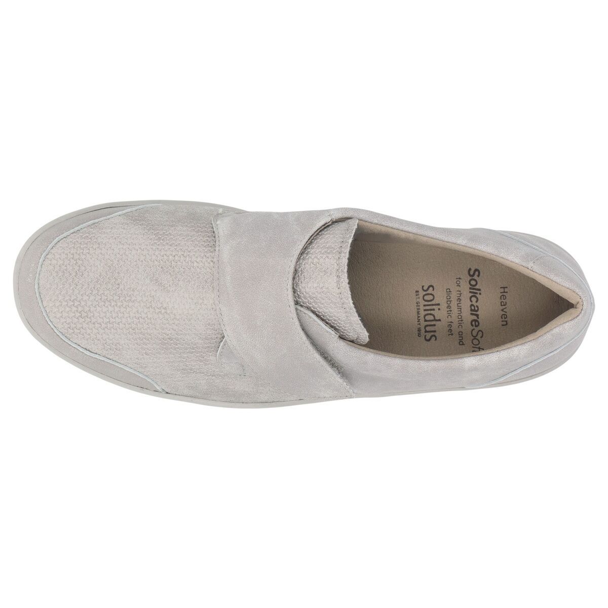 Модель Solidus Heaven Solicare це класичний, позачасовий супутник на всі випадки життя. Вирізняється особливою м'якістю, завдяки чому ідеально підходить власницям чутливих стоп. Еластична шкіра стрейч розвантажує проблемні зони стопи. Завдяки ширині H та зоні розтягування в передній частині стопи, воно пропонує достатньо місця для чутливих ніг, таких як деформація вальгусної кісточки, клишоногість або широкі стопи. Взуття має знімні устілки з корка і з покриттям з дихаючої мікрофібри, які за необхідності можна замінити на індивідуальні ортопедичні устілки. Нековзна підошва забезпечує безпеку і стійкість на будь-якій поверхні.