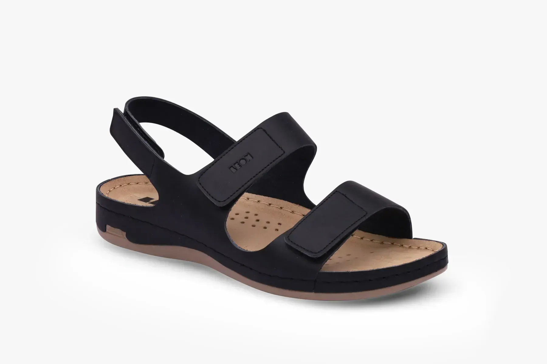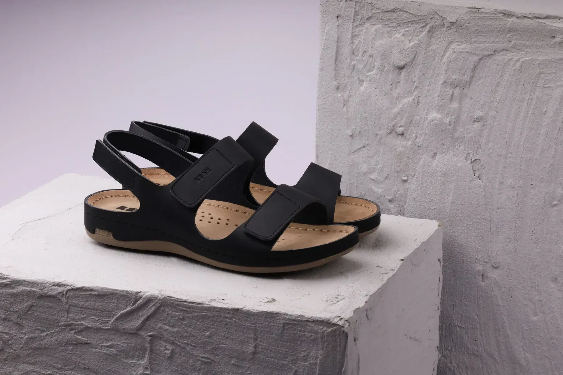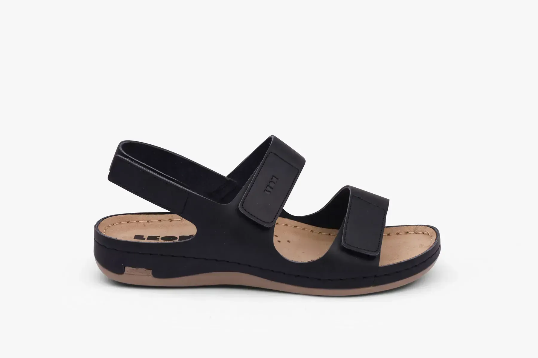Жіночі сандалії Leon Чорний 966-орландо-36 ортопедія. Характеристики: Артикул: 966 Чорний орландо 36, Колір: Чорний, Тип: Сандалі, Матеріал верху: Натуральна шкіра, Матеріал підошви: Поліуретан, Матеріал стельки: натуральна шкіра з анатомічною підошвою та м'якою гелевою устілкою, Особливості: Регульована липучка, П'ятка "Антишок", Протиковзка підошва, Країна виробник: Сербія.